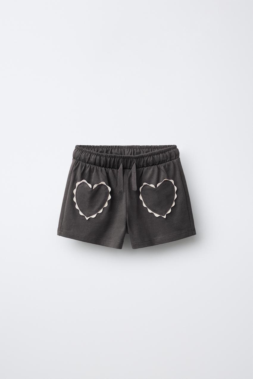 ZARA ШОРТЫ-БЕРМУДЫ «СЕРДЦЕ» С ВОЛНИСТЫМ КРАЕМ, АНТРАЦИТОВО-СЕРЫЙ