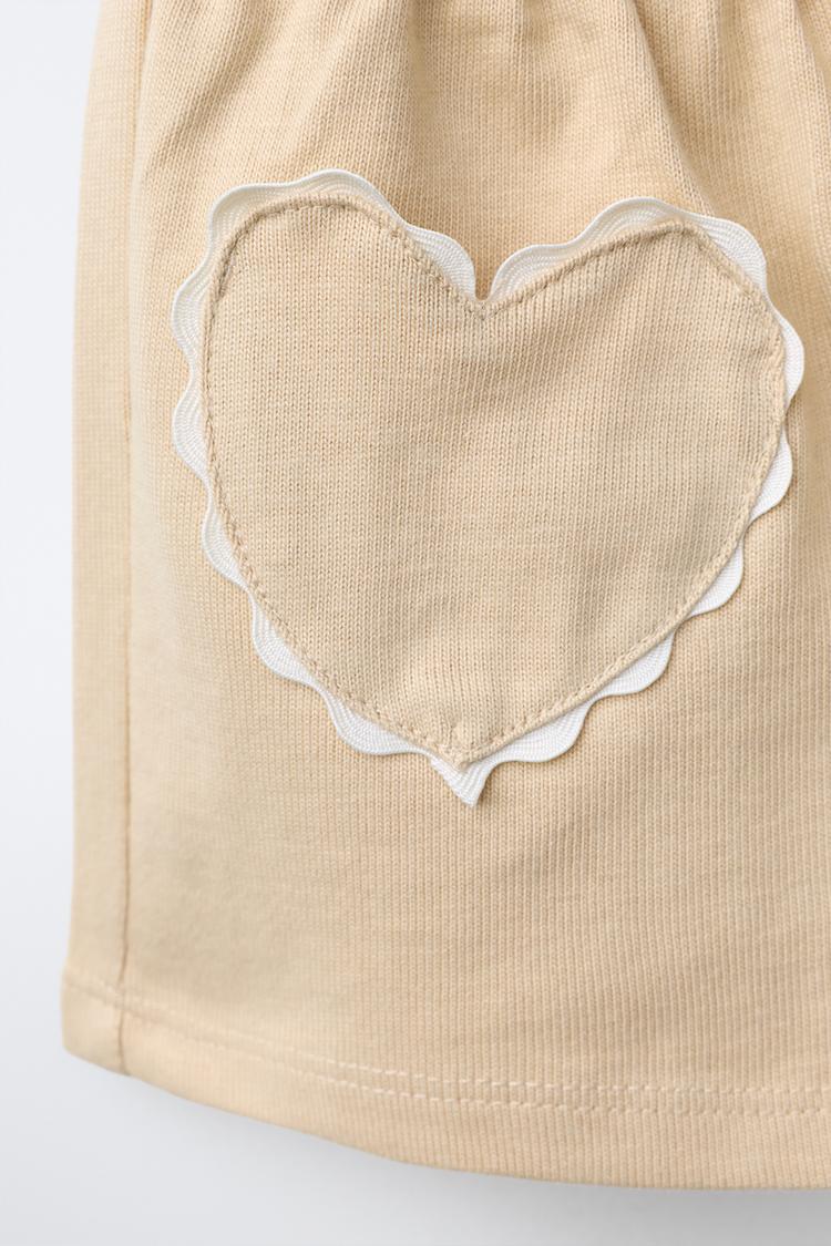 ZARA ШОРТЫ-БЕРМУДЫ «СЕРДЦЕ» С ВОЛНИСТЫМ КРАЕМ, БЕЖЕВЫЙ