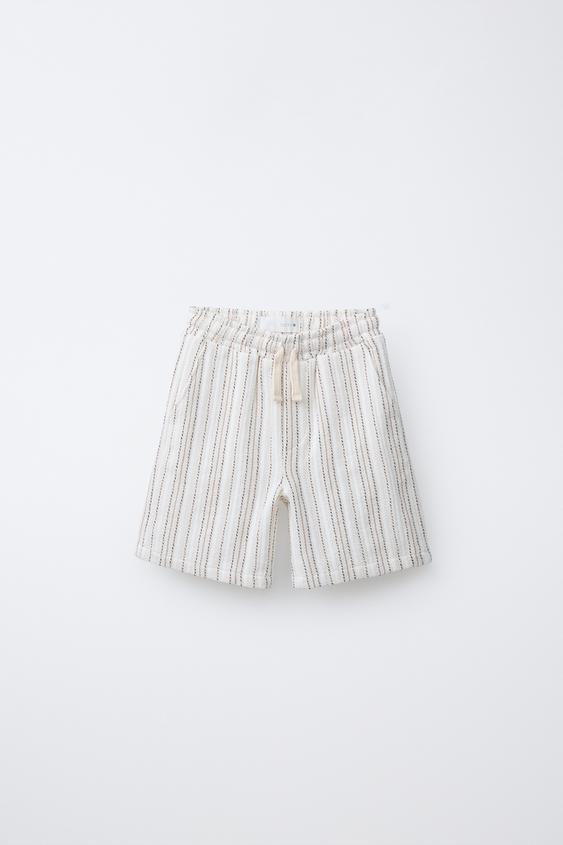 ZARA ШОРТЫ-БЕРМУДЫ В ПОЛОСКУ, ЭКРЮ