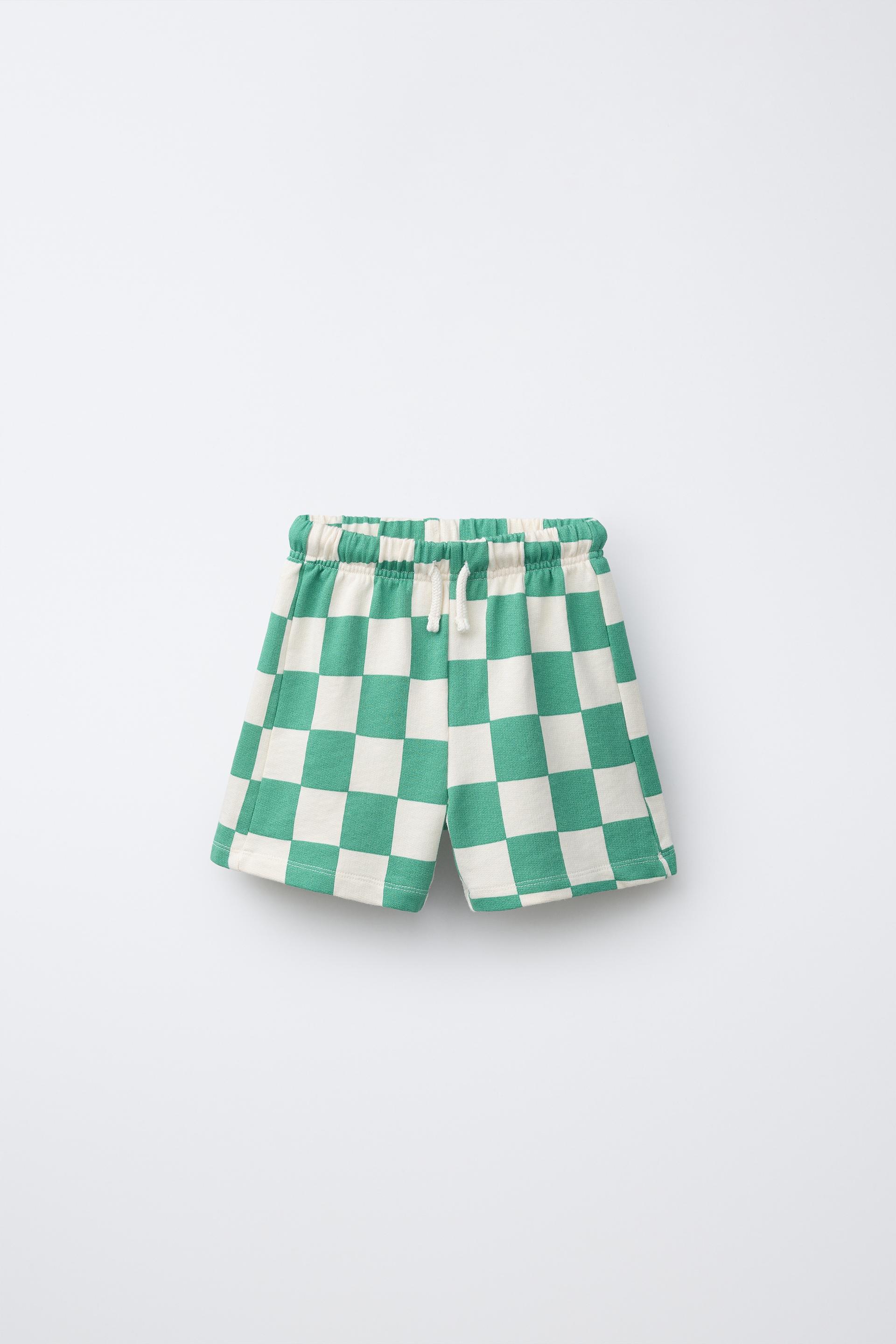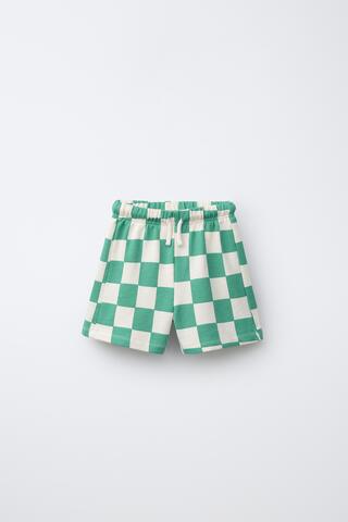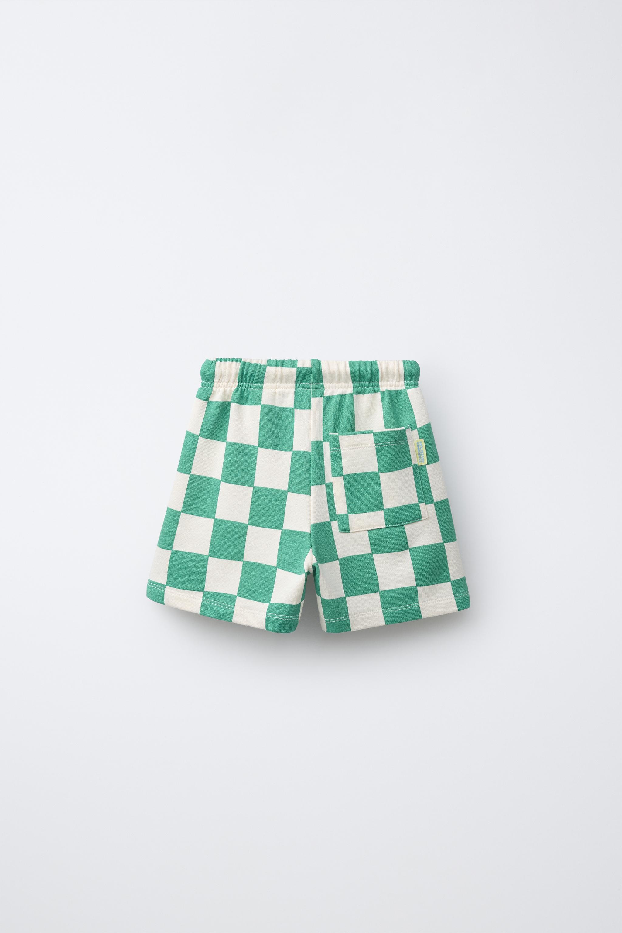 ZARA ШОРТЫ-БЕРМУДЫ В ШАХМАТНУЮ КЛЕТКУ, ЭКРЮ/ЗЕЛЕНЫЙ