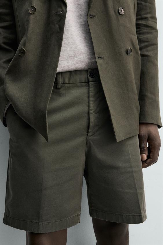 ZARA ШОРТЫ ЧИНОС REGULAR FIT, ХАКИ