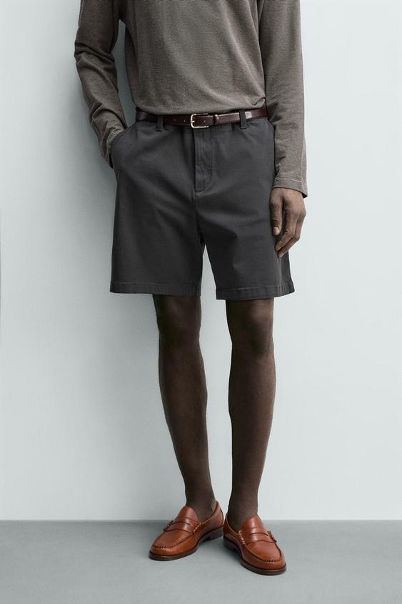 ZARA ШОРТЫ ЧИНОС REGULAR FIT, СЕРО-СИНИЙ