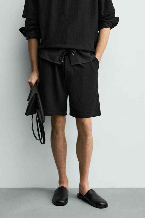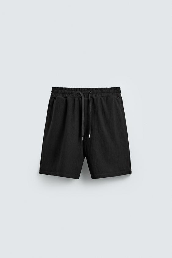 ZARA ШОРТЫ-ДЖОГГЕРЫ ИЗ РЕЛЬЕФНОЙ ТКАНИ, ЧЕРНЫЙ