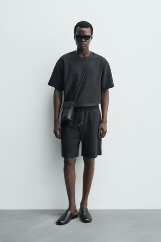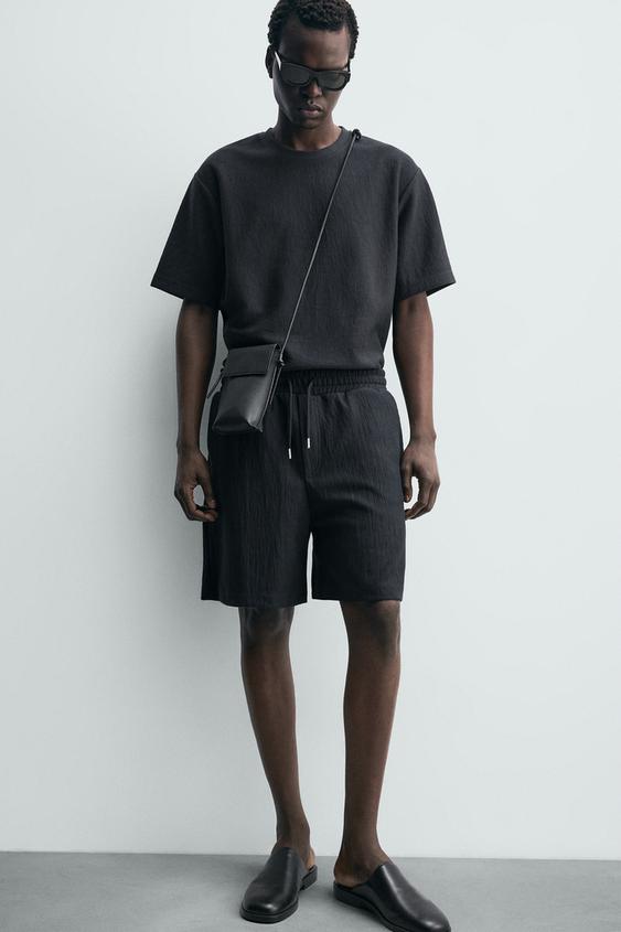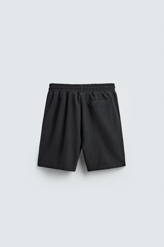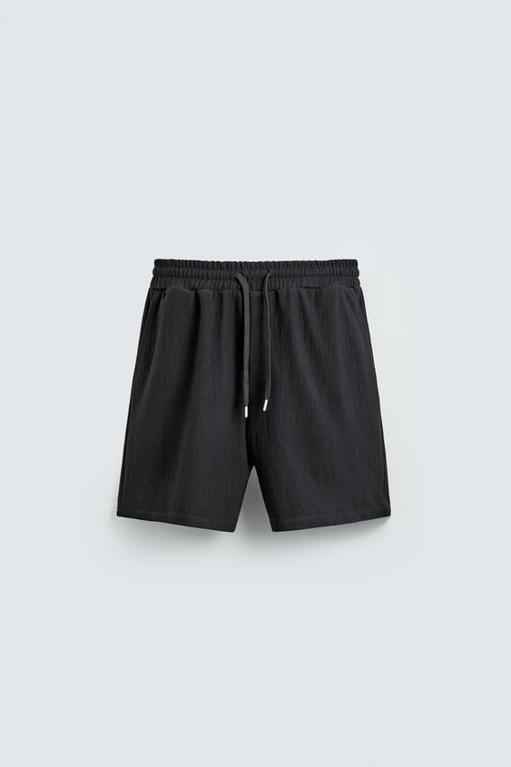 ZARA ШОРТЫ-ДЖОГГЕРЫ ИЗ РЕЛЬЕФНОЙ ТКАНИ, СТАЛЬНОЙ СИНИЙ
