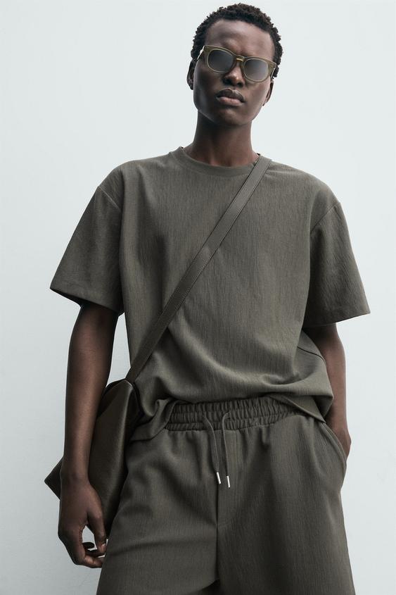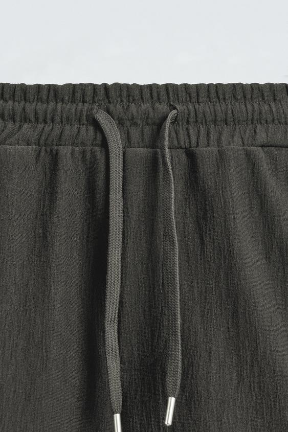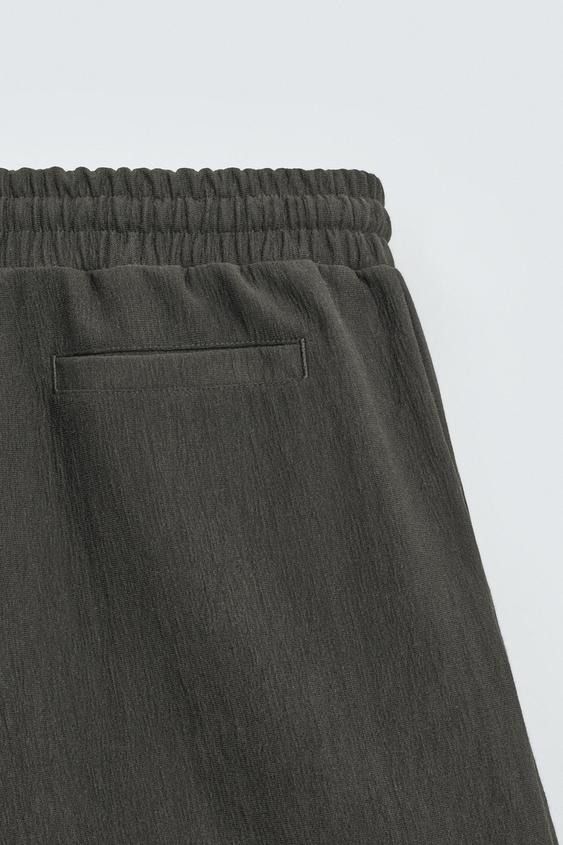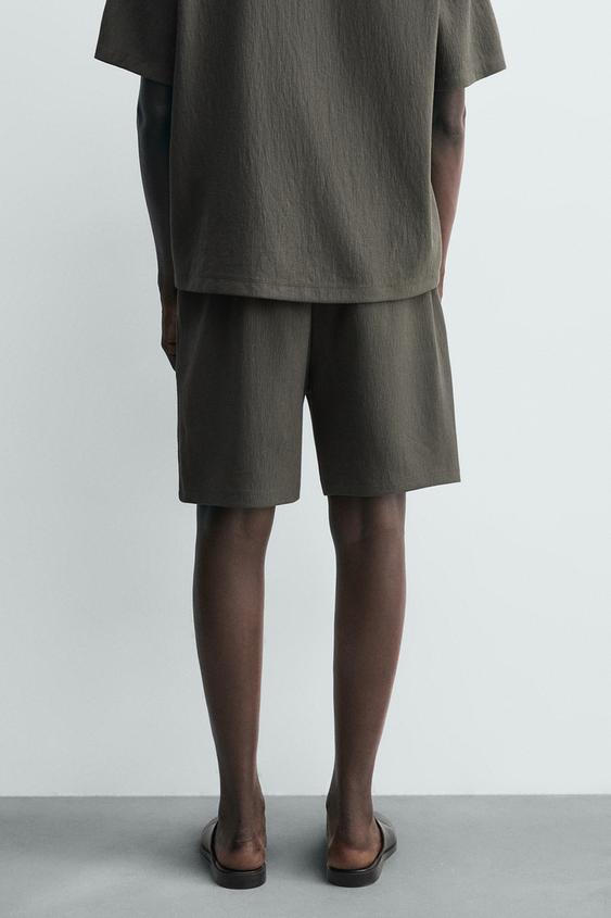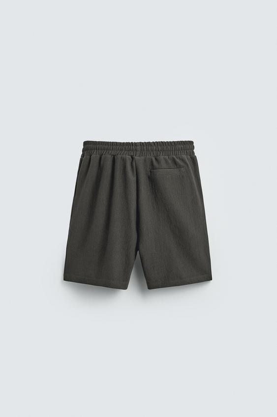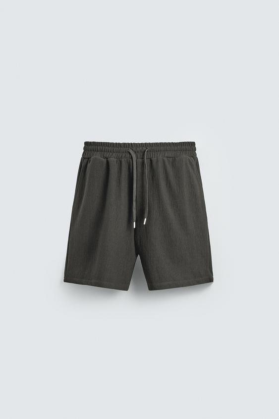 ZARA ШОРТЫ-ДЖОГГЕРЫ ИЗ РЕЛЬЕФНОЙ ТКАНИ, ЗЕЛЕНОВАТЫЙ