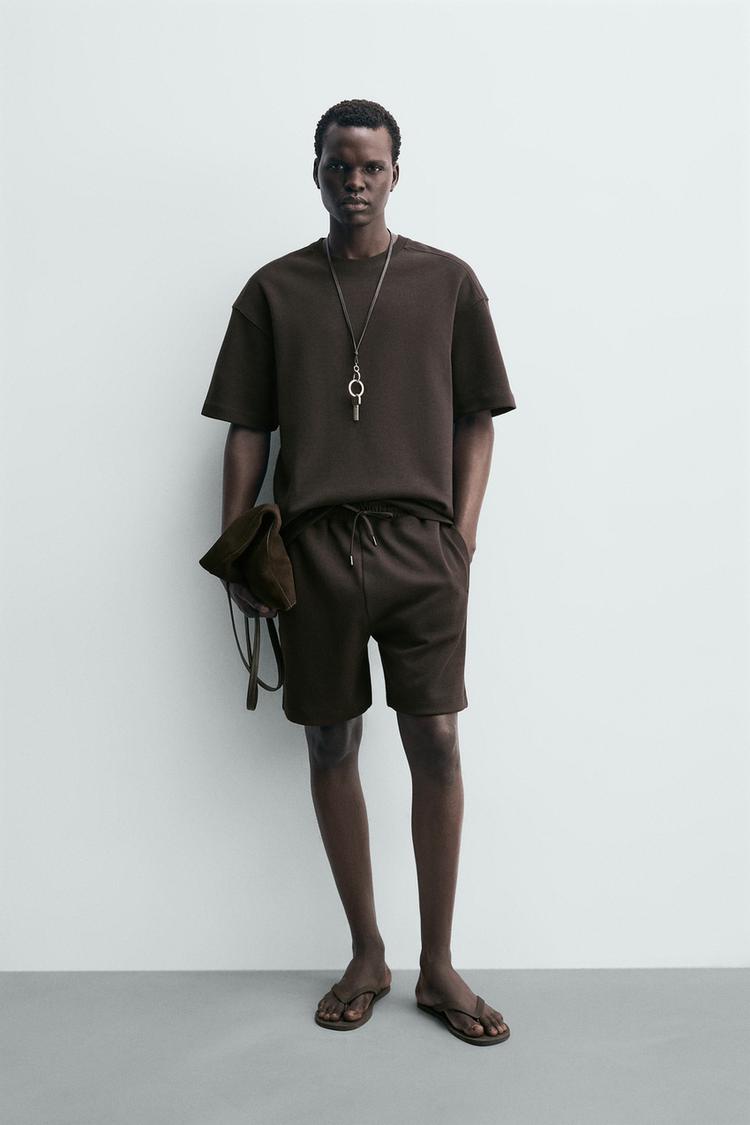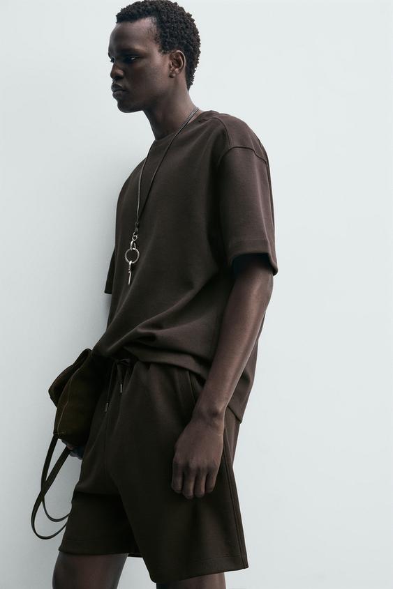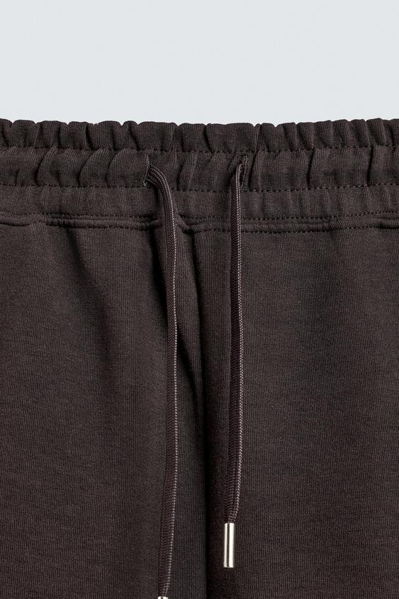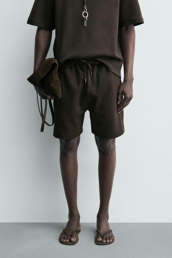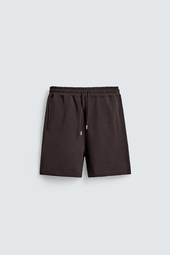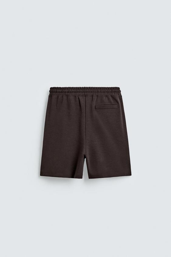 ZARA ШОРТЫ-ДЖОГГЕРЫ RELAXED FIT INTERLOCK, ТЕМНО-КОРИЧНЕВЫЙ