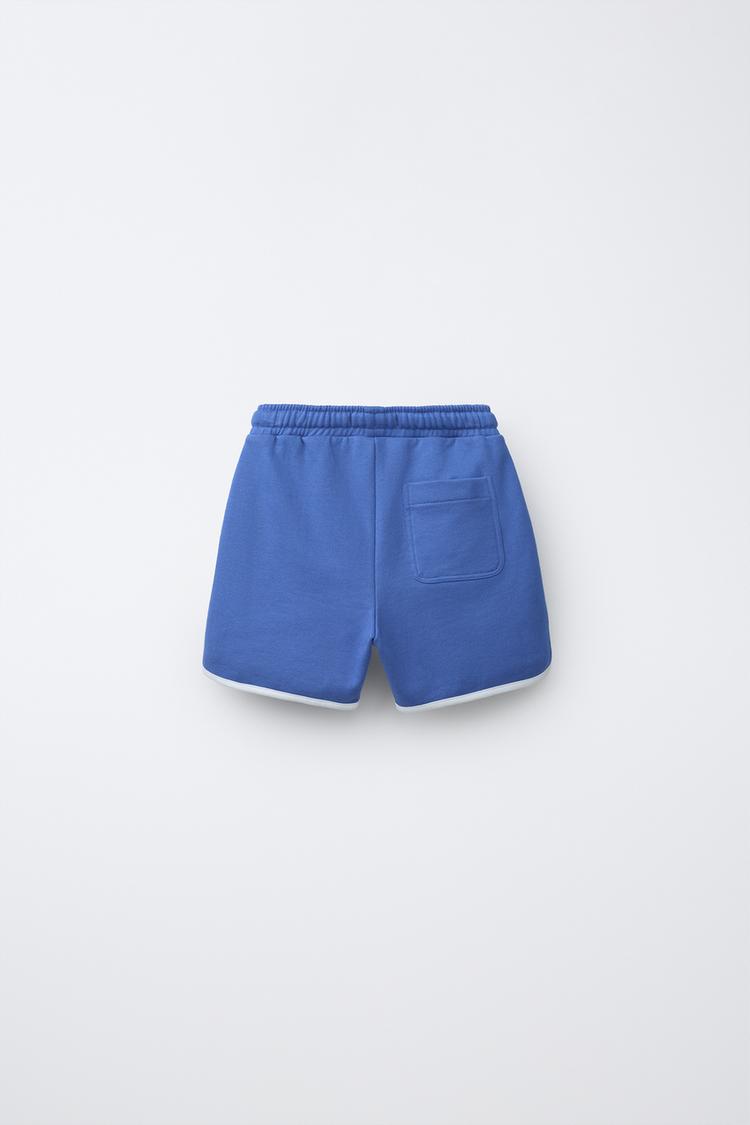 ZARA ШОРТЫ-ДЖОГГЕРЫ С КОНТРАСТНОЙ ОТДЕЛКОЙ, СИНИЙ