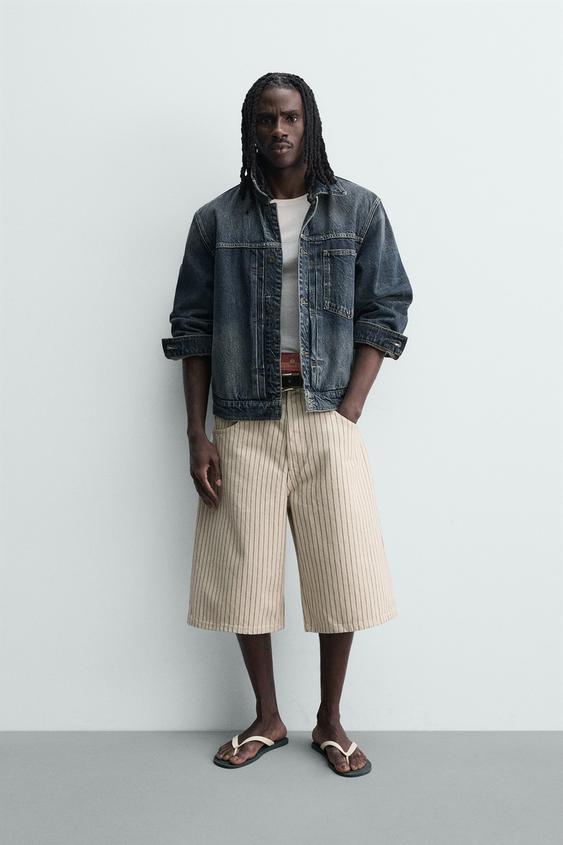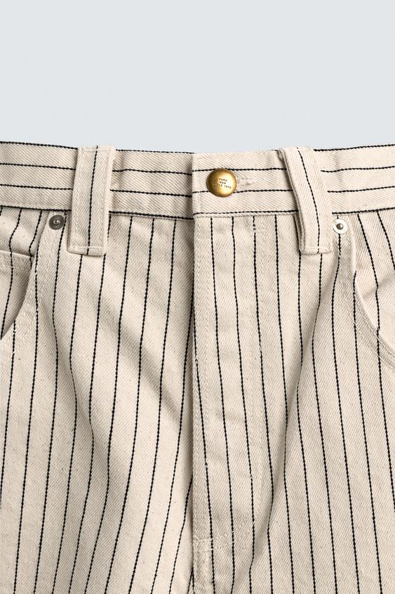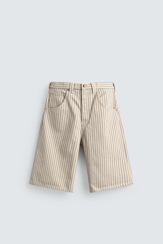 ZARA ШОРТЫ-ДЖОРТСЫ RELAXED FIT В ПОЛОСКУ, ЭКРЮ