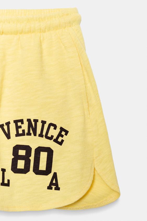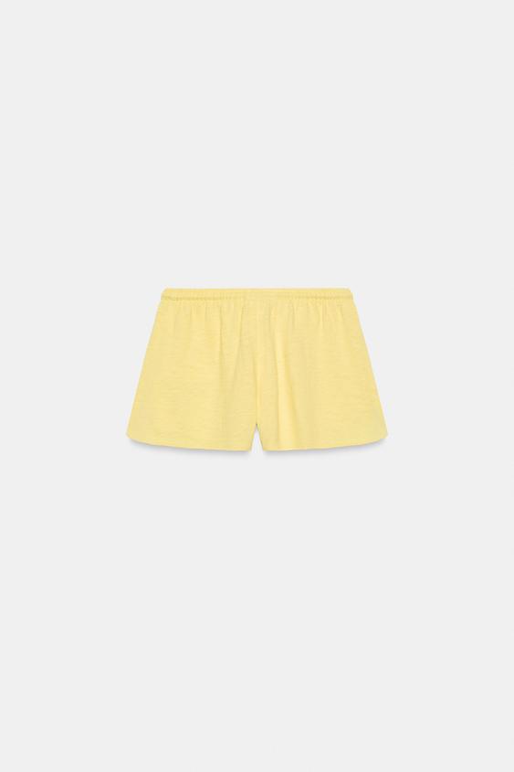 ZARA ШОРТЫ ИЗ ХЛОПКА С КУЛИСКОЙ, СВЕТЛО-ЖЕЛТЫЙ