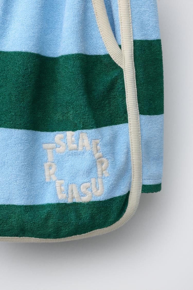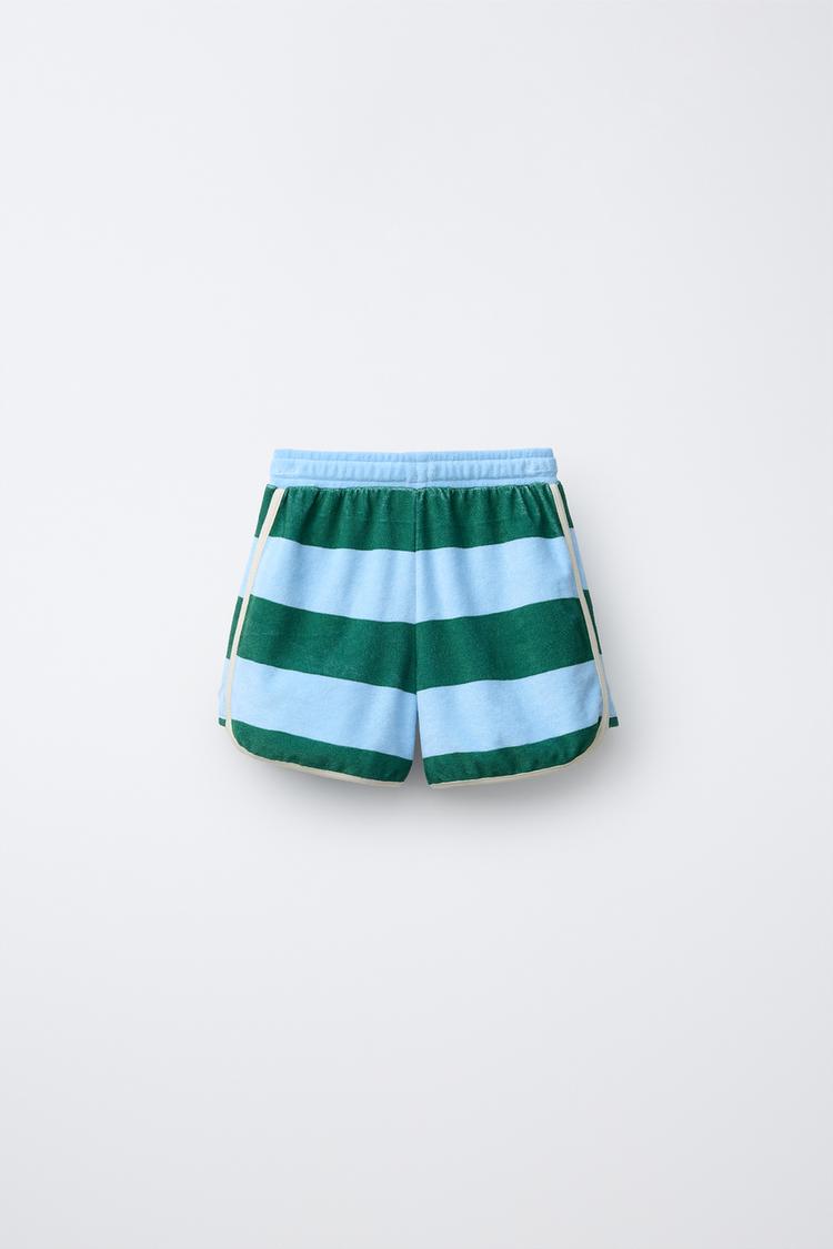 ZARA ШОРТЫ ИЗ МАХРОВОЙ ТКАНИ В ПОЛОСКУ, ГОЛУБОЙ