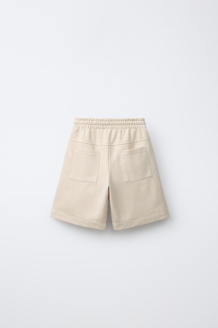 ZARA ШОРТЫ ИЗ МЯГКОЙ ТКАНИ С ЭТИКЕТКОЙ, КАМЕННО-СЕРЫЙ
