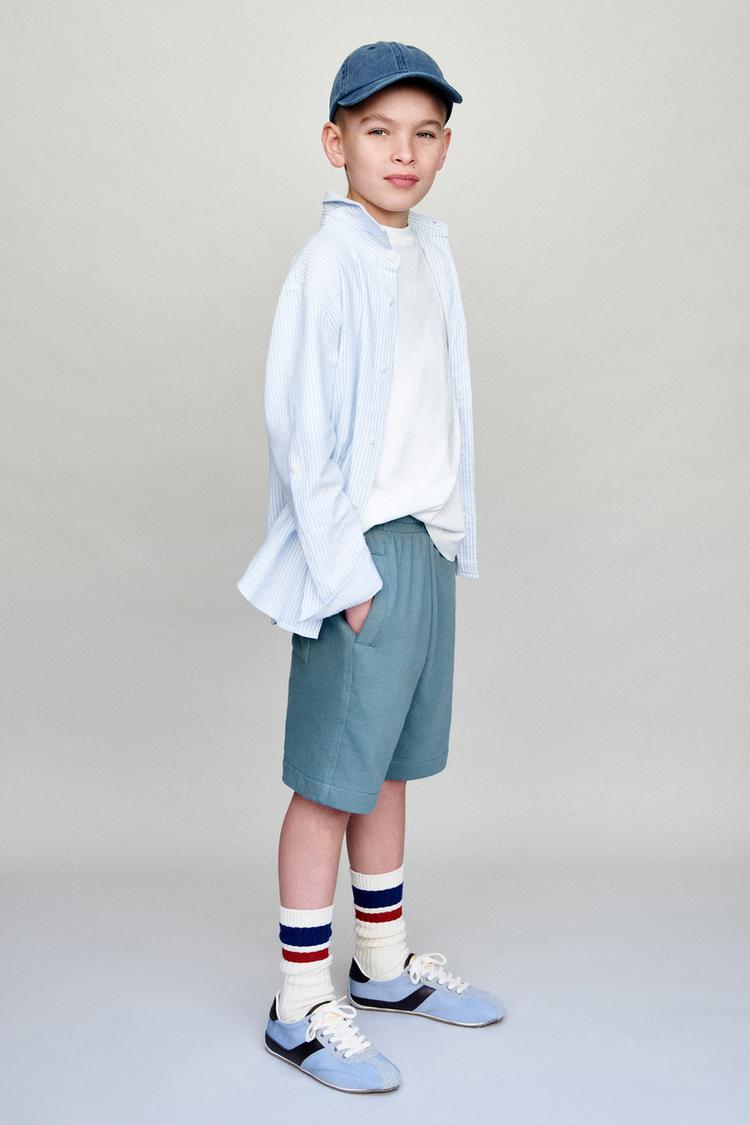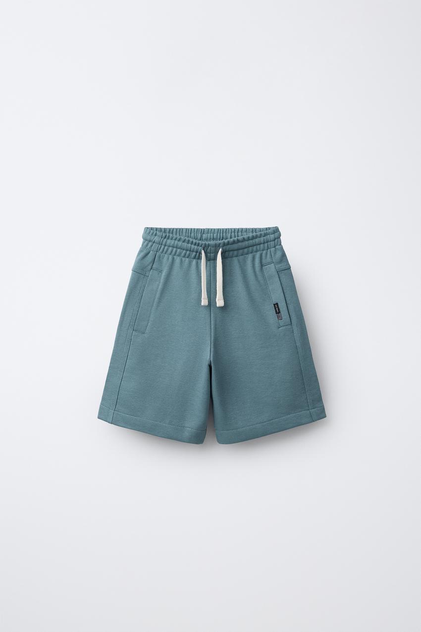 ZARA ШОРТЫ ИЗ МЯГКОЙ ТКАНИ С ЭТИКЕТКОЙ, УТИНО-СИНИЙ