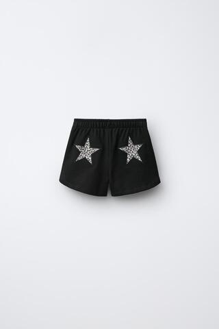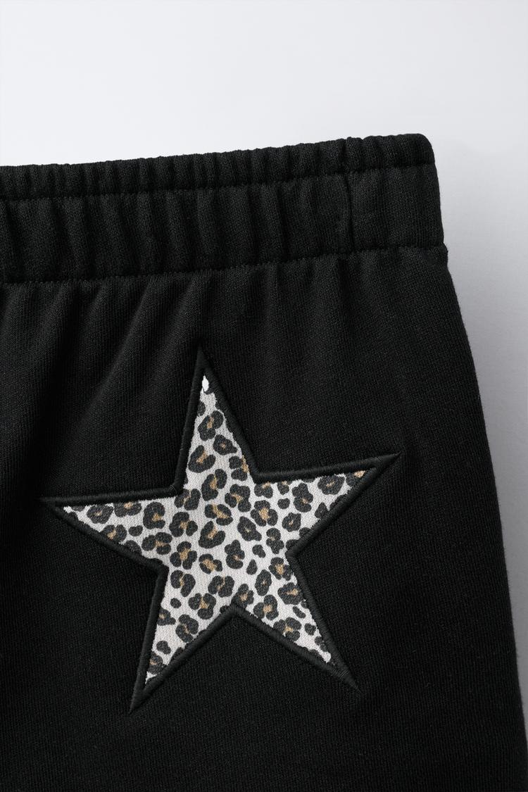 ZARA ШОРТЫ ИЗ МЯГКОЙ ТКАНИ С НАШИВКОЙ «ЗВЕЗДА», ЧЕРНЫЙ