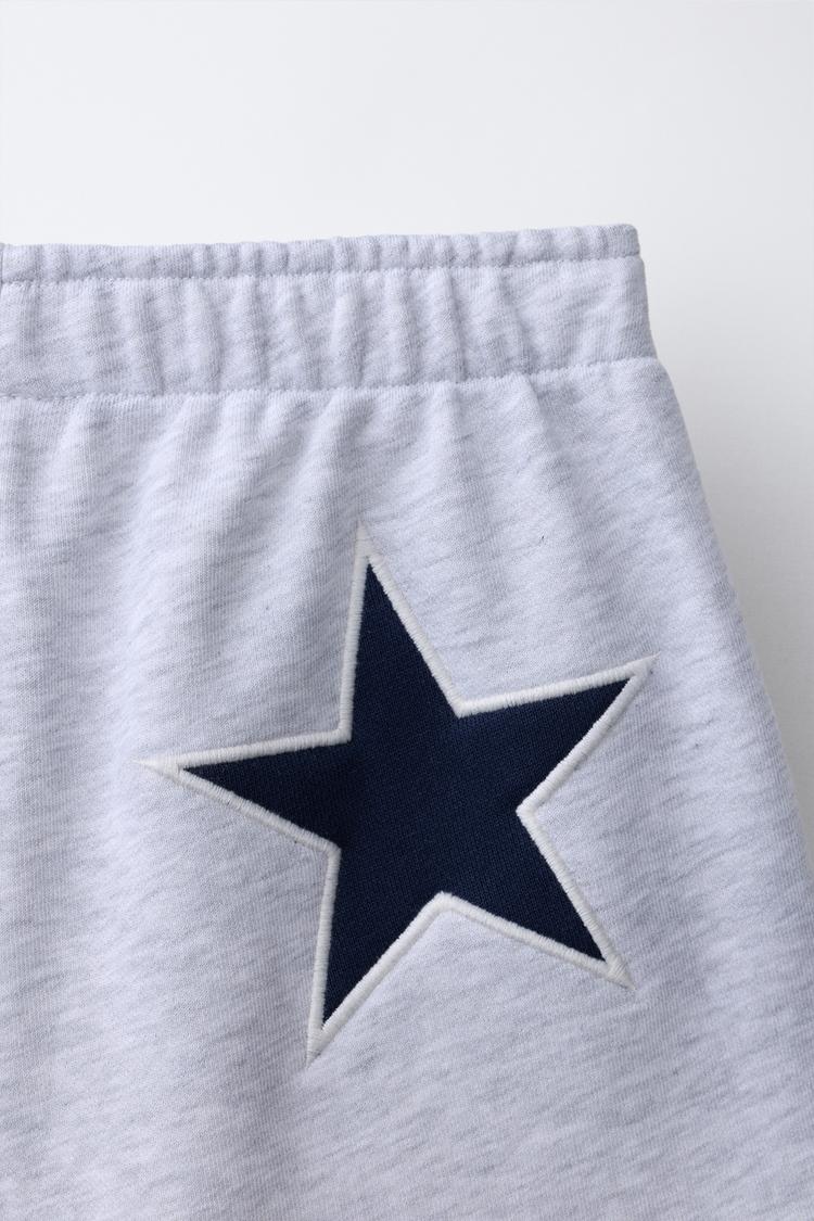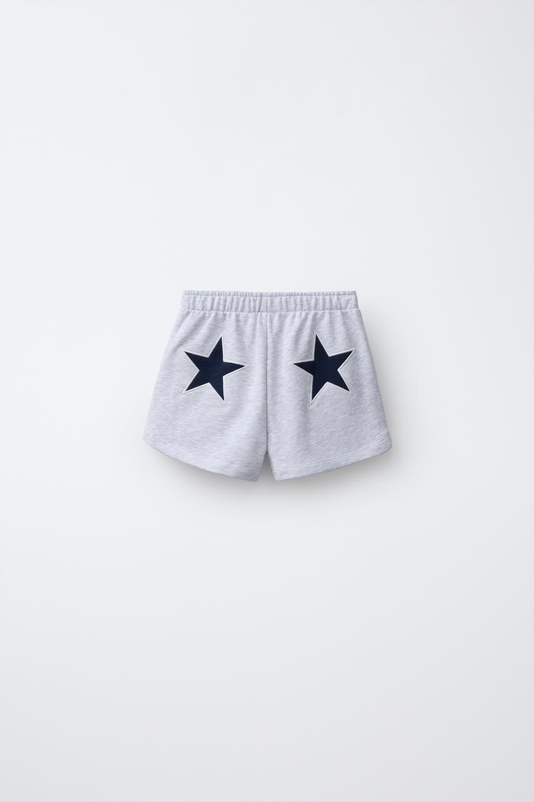 ZARA ШОРТЫ ИЗ МЯГКОЙ ТКАНИ С НАШИВКОЙ «ЗВЕЗДА», СЕРЫЙ МЕЛАНЖ