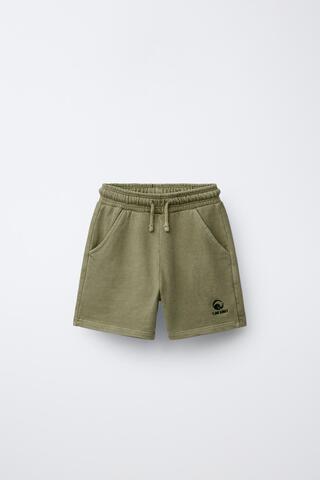 ZARA ШОРТЫ ИЗ МЯГКОЙ ТКАНИ С ОКРАШИВАНИЕМ И ВЫШИВКОЙ, ХАКИ