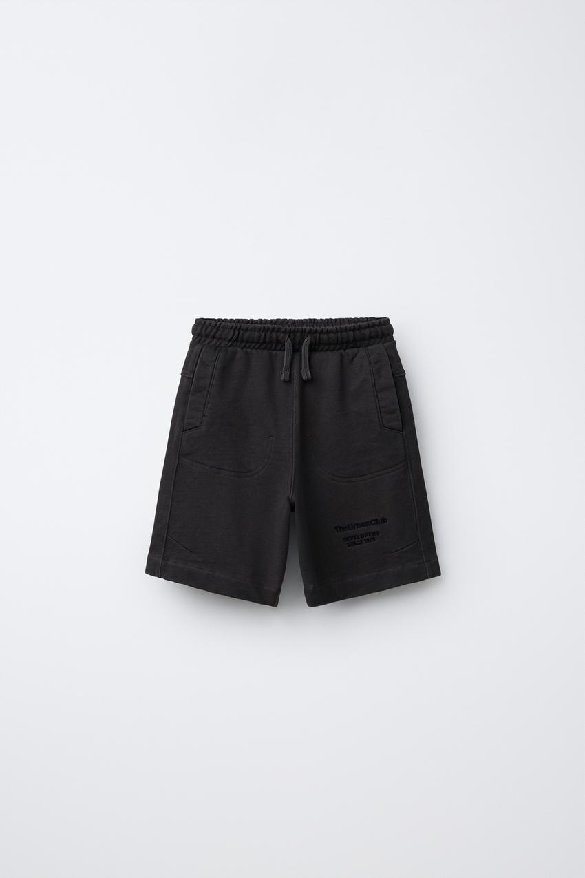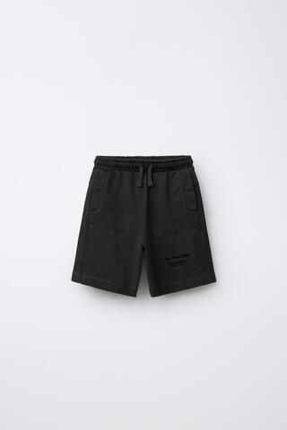 ZARA ШОРТЫ ИЗ МЯГКОЙ ТКАНИ С ВЫШИТЫМ ТЕКСТОМ, ТЕМНЫЙ АНТРАЦИТ