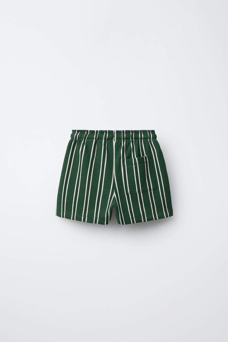 ZARA ШОРТЫ ИЗ МЯГКОЙ ТКАНИ В ПОЛОСКУ, ЗЕЛЕНЫЙ