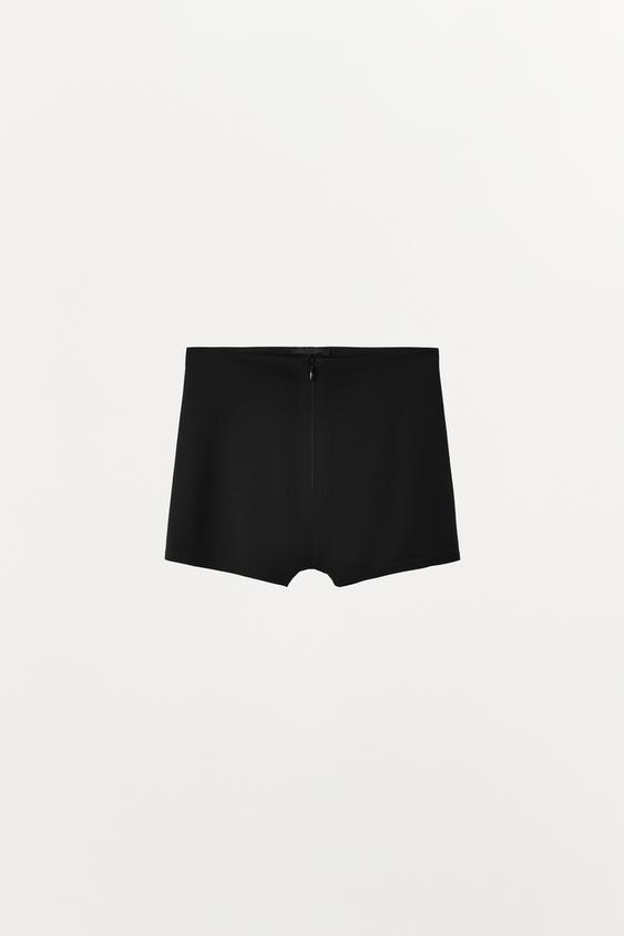 ZARA ШОРТЫ ИЗ СМЕСИ ПОЛИАМИДА НА МОЛНИИ, ЧЕРНЫЙ