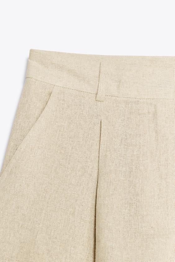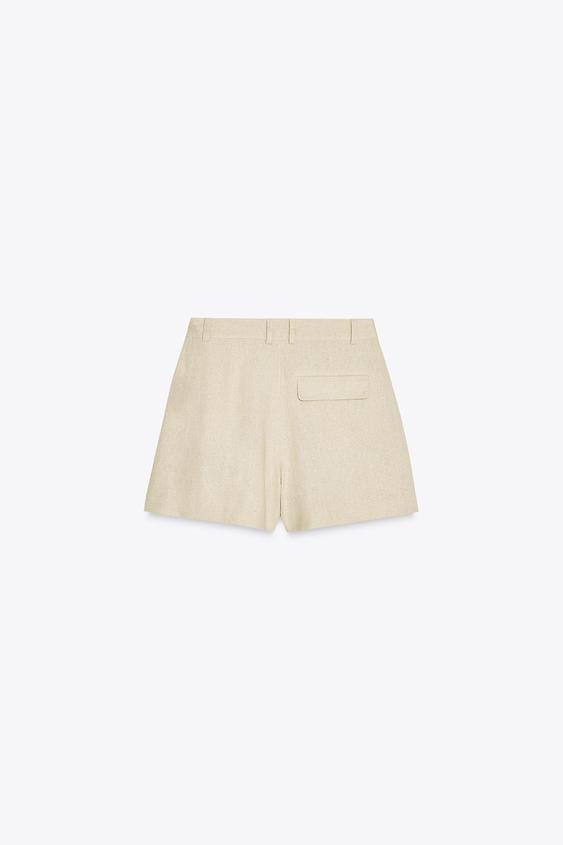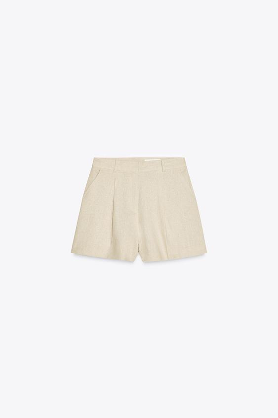 ZARA ШОРТЫ ИЗ СМЕСОВОГО ЛЬНА С ВЫСОКОЙ ПОСАДКОЙ, СВЕТЛО-БЕЖЕВЫЙ