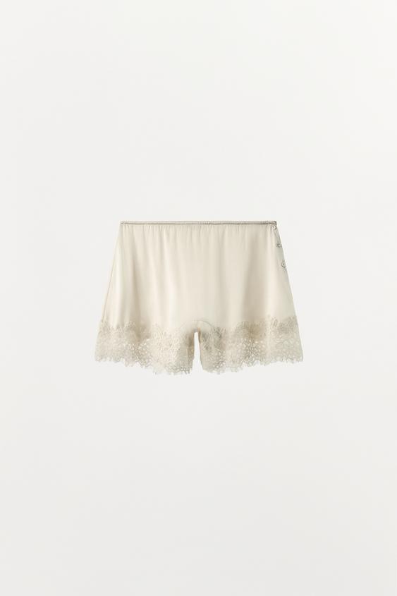ZARA ШОРТЫ ИЗ СМЕСОВОГО ШЕЛКА С КРУЖЕВОМ, ЭКРЮ