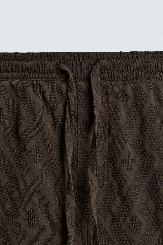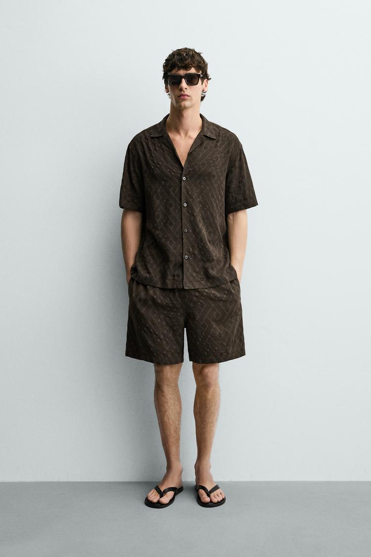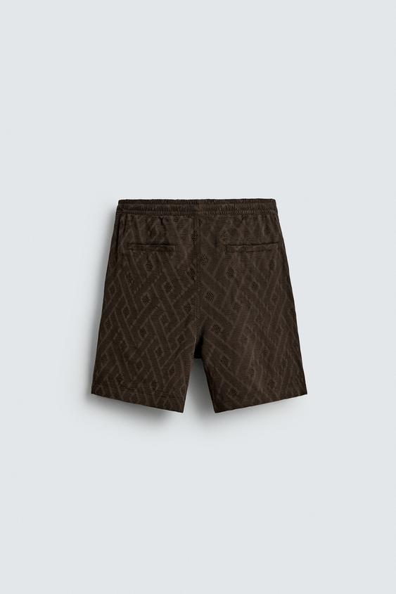 ZARA ШОРТЫ ИЗ ЖАККАРДА С ГЕОМЕТРИЧЕСКИМ РИСУНКОМ, КОРИЧНЕВЫЙ