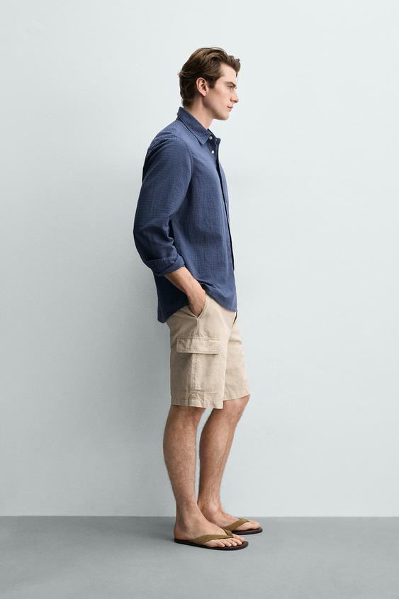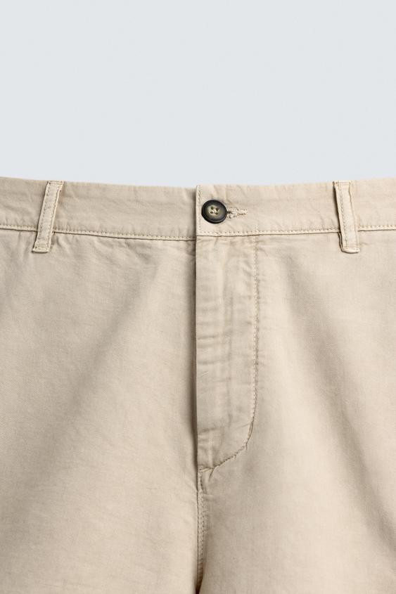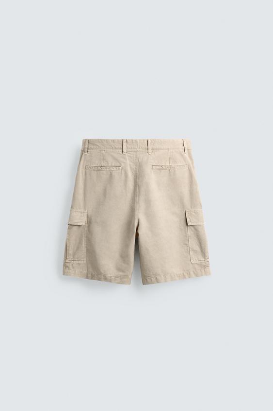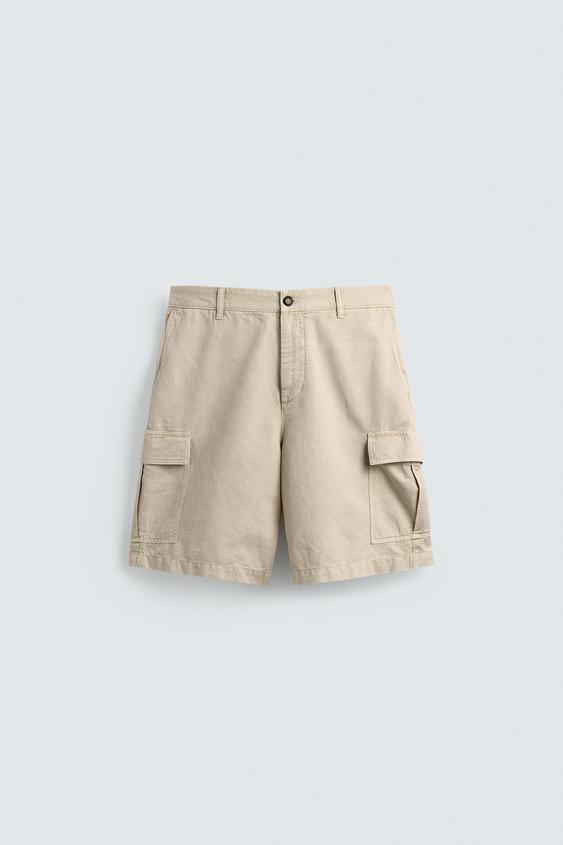 ZARA ШОРТЫ КАРГО ИЗ СМЕСИ ХЛОПКА И ЛЬНА, СВЕТЛО-БЕЖЕВЫЙ