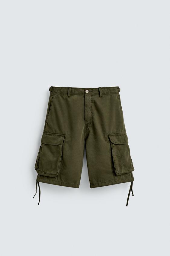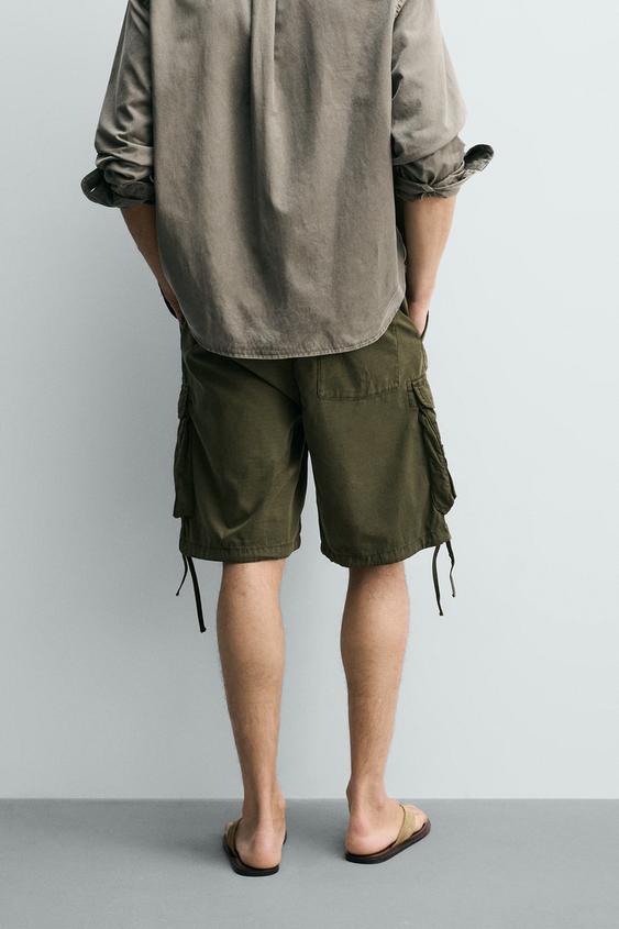 ZARA ШОРТЫ КАРГО RELAXED FIT, ХАКИ