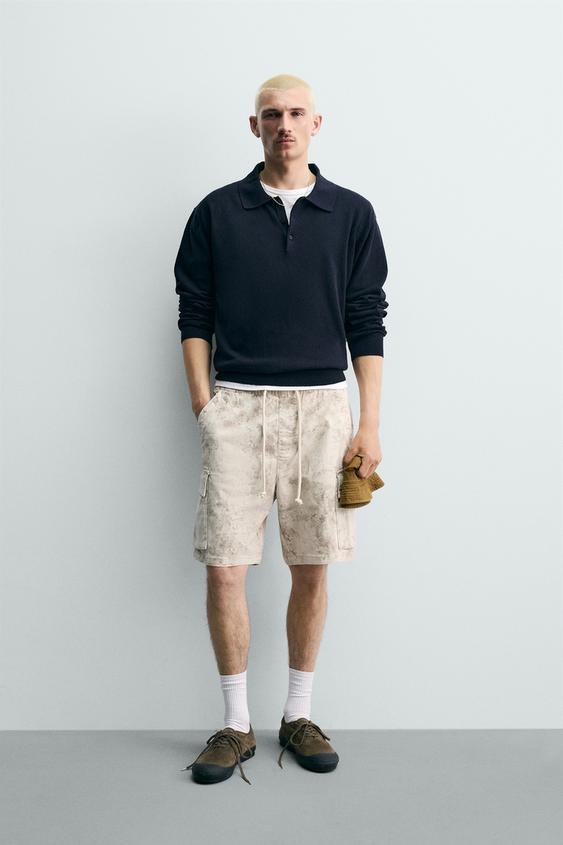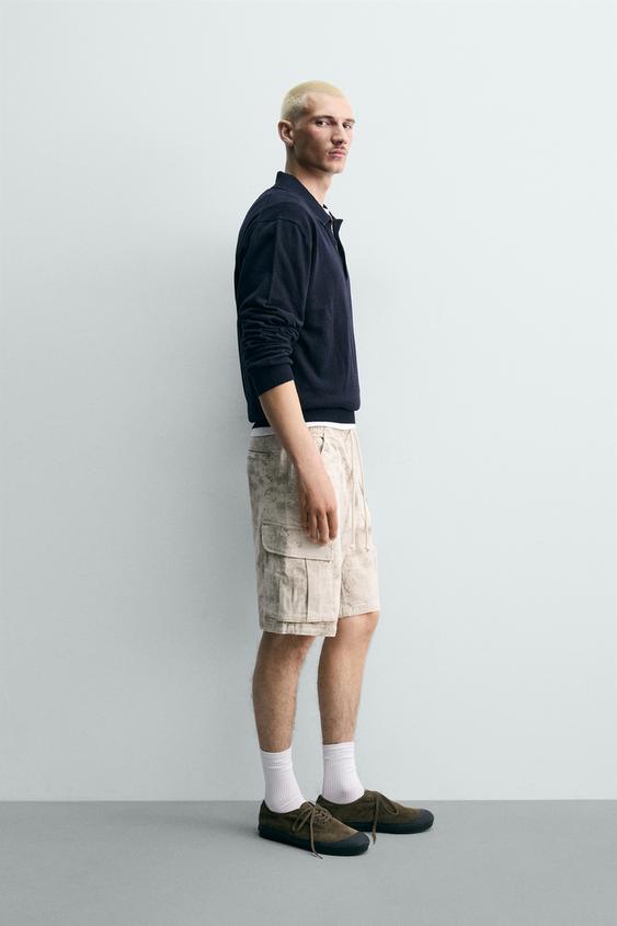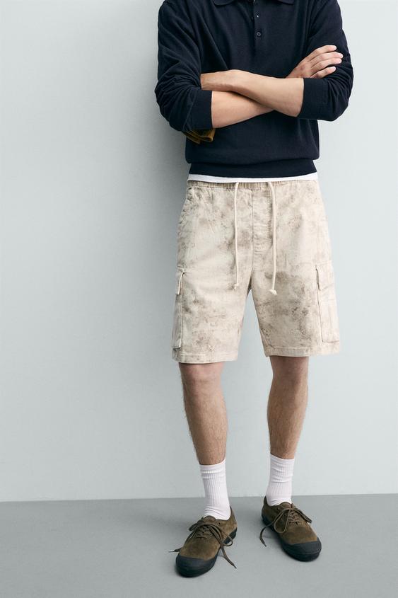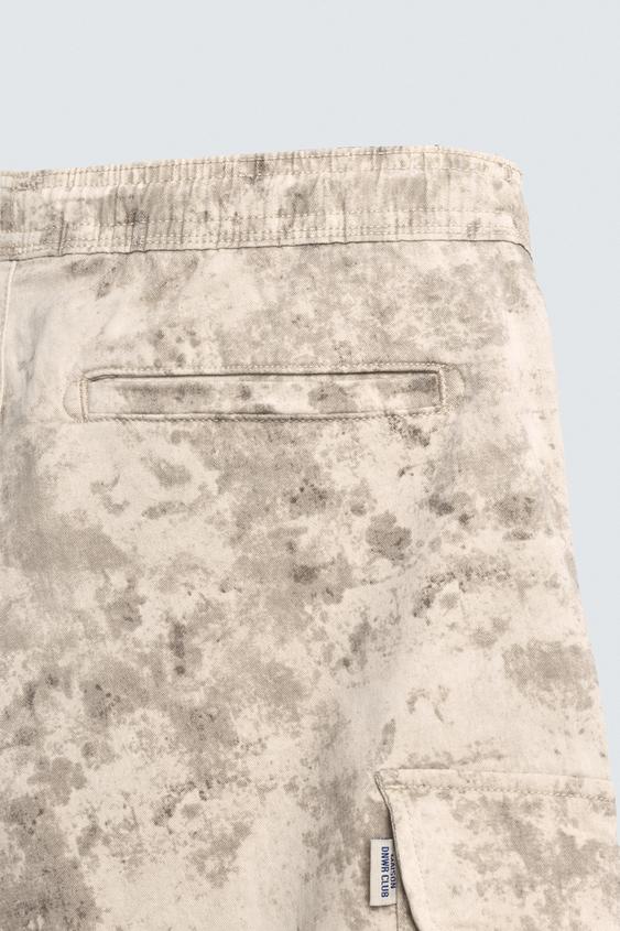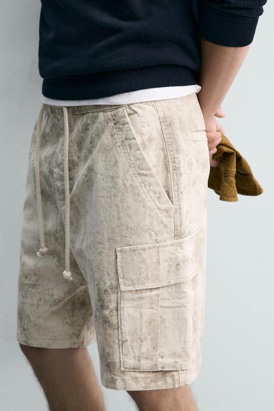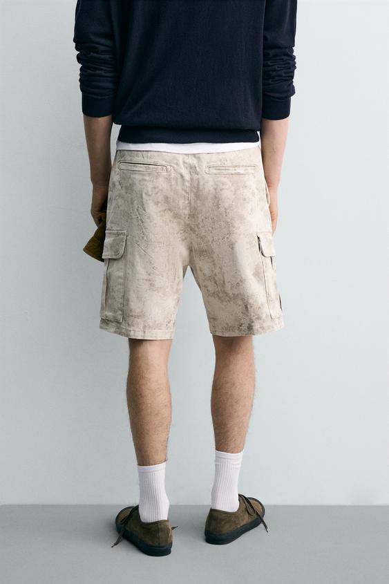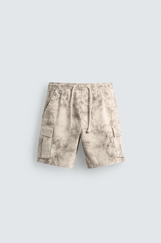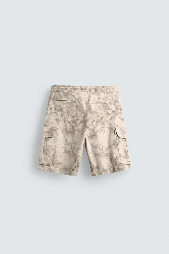 ZARA ШОРТЫ КАРГО RELAXED FIT С ЭФФЕКТОМ ПОТЕРТОСТИ, С ПРИНТОМ