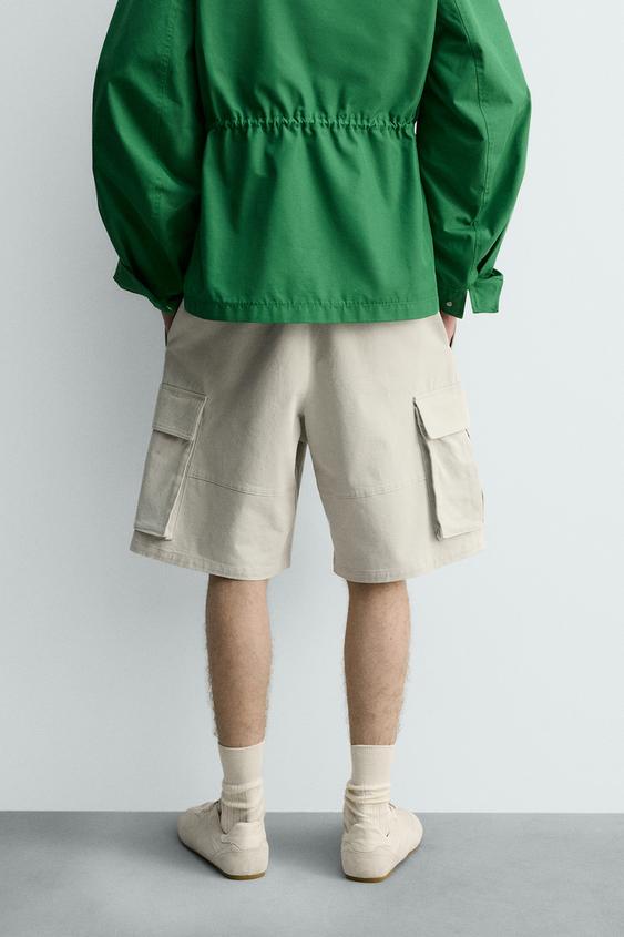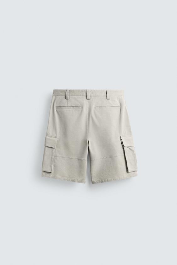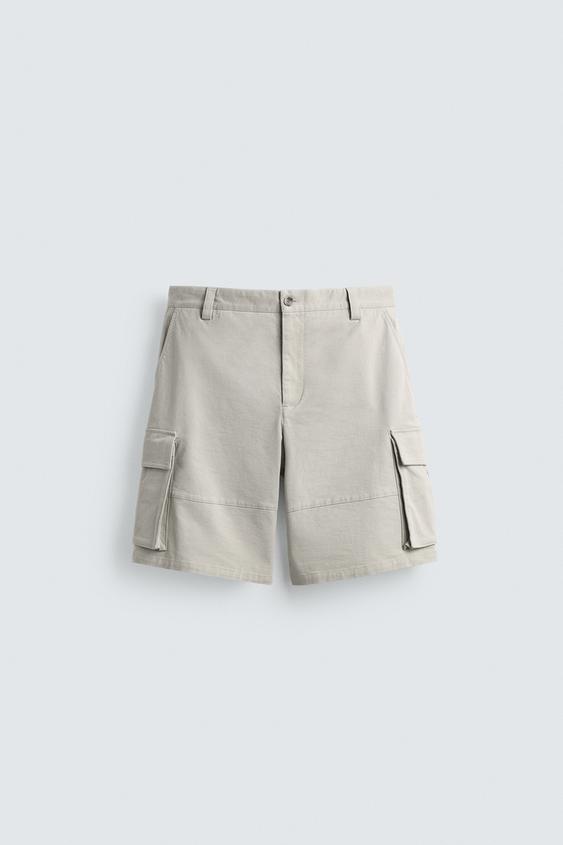 ZARA ШОРТЫ КАРГО RELAXED FIT, ЖЕМЧУЖНО-СЕРЫЙ