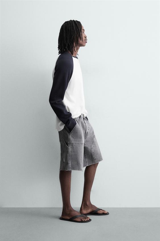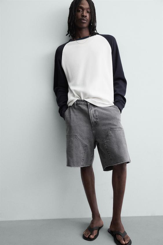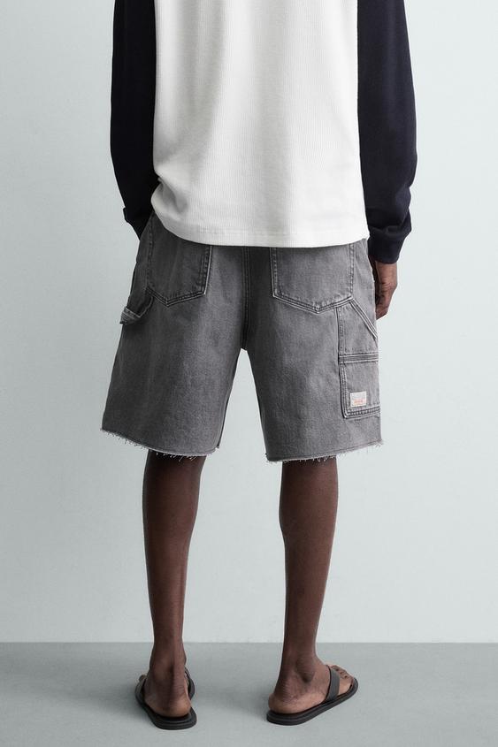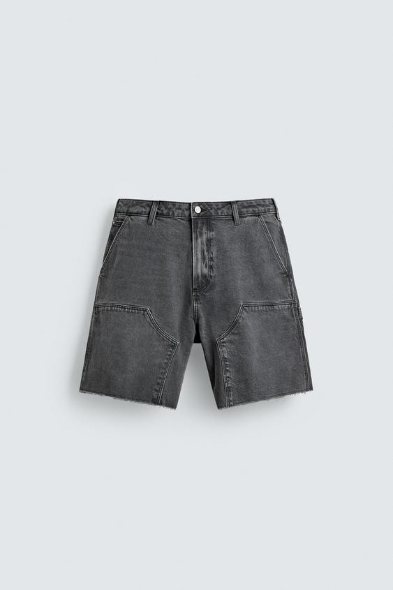ZARA ШОРТЫ КАРГО С КАРМАНОМ, ТЕМНО-СЕРЫЙ
