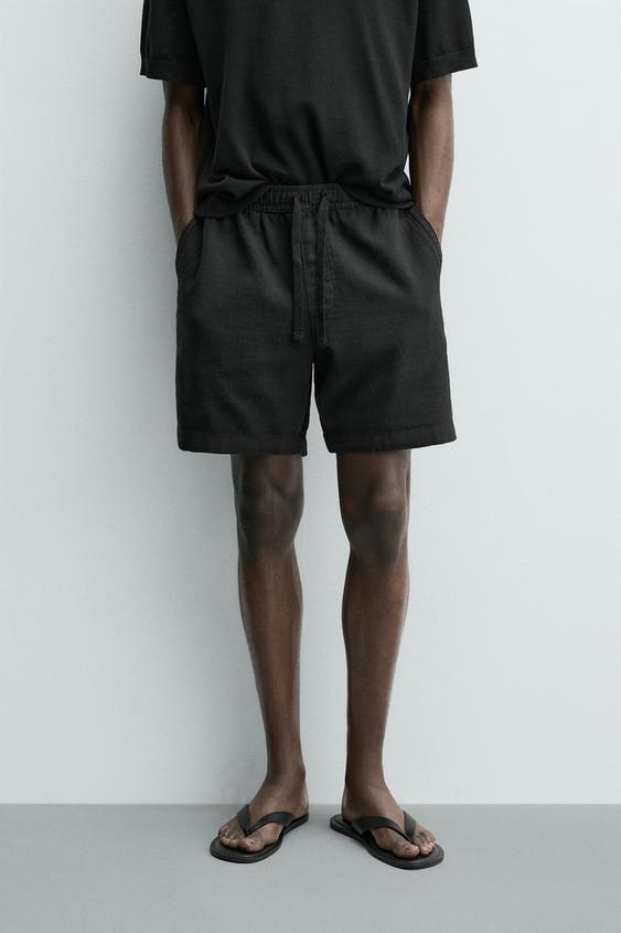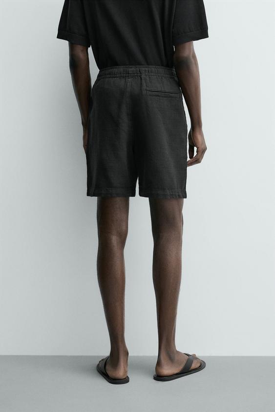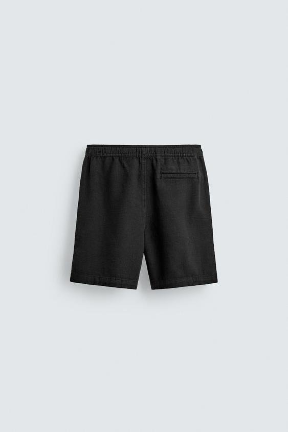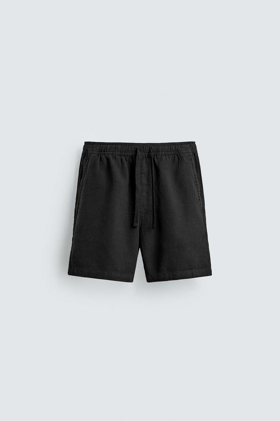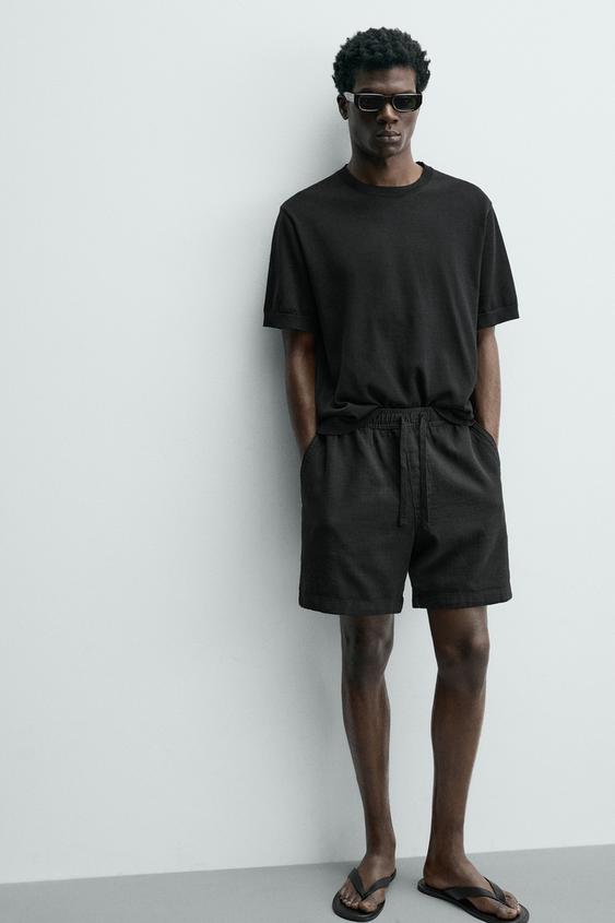 ZARA ШОРТЫ КЛАССИЧЕСКОГО КРОЯ ИЗ РЕЛЬЕФНОЙ ТКАНИ, ЧЕРНЫЙ