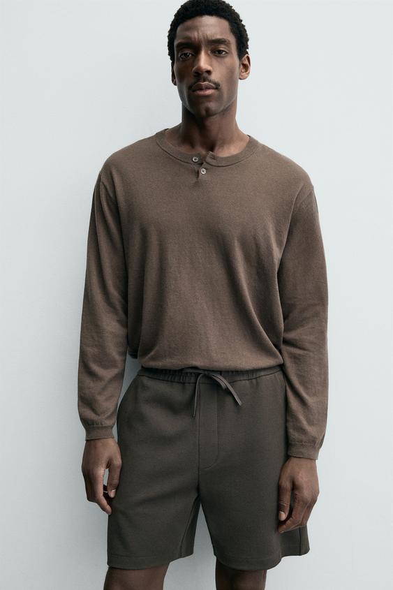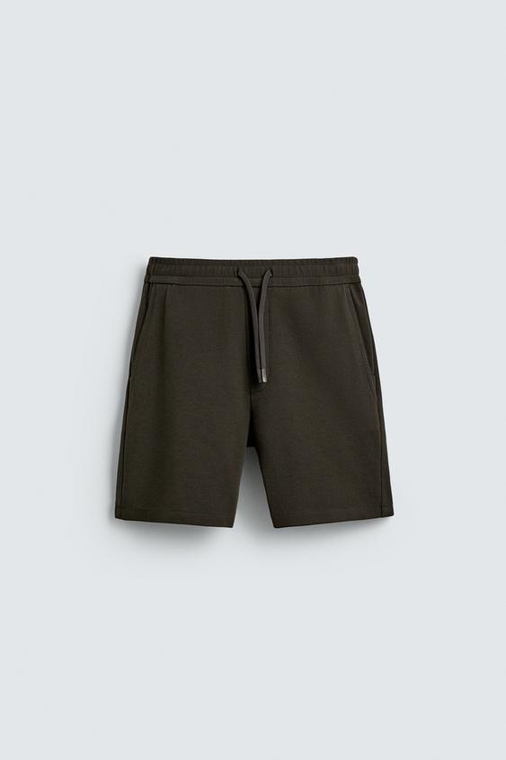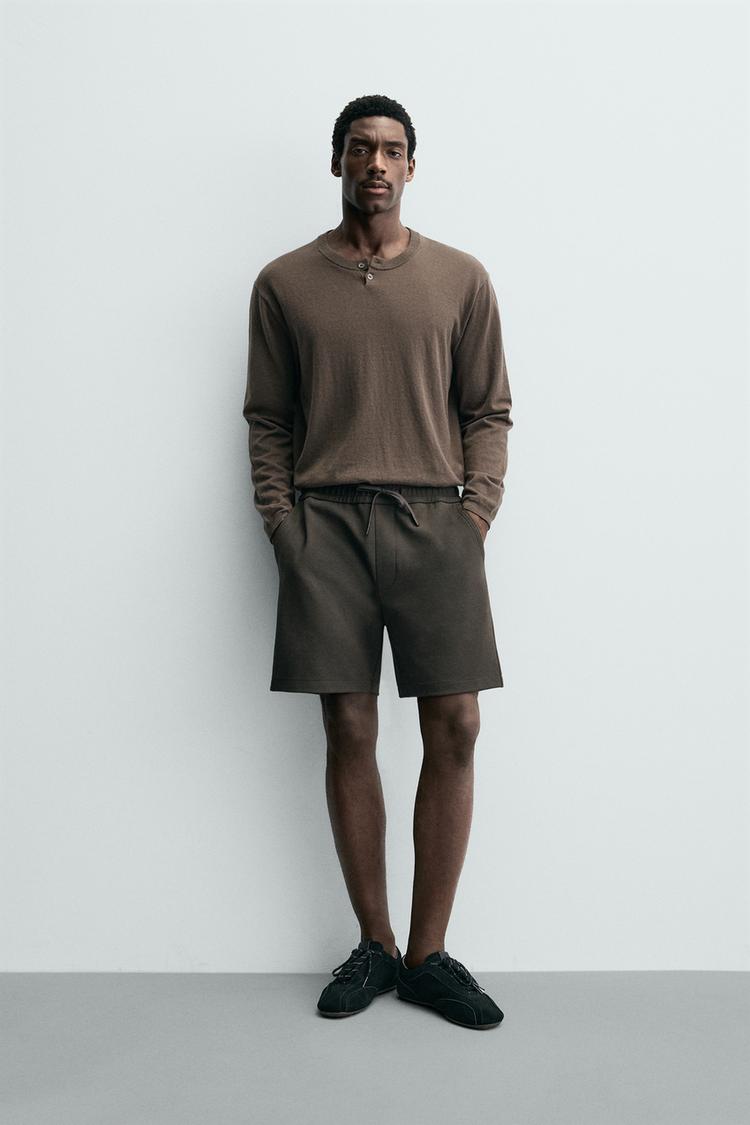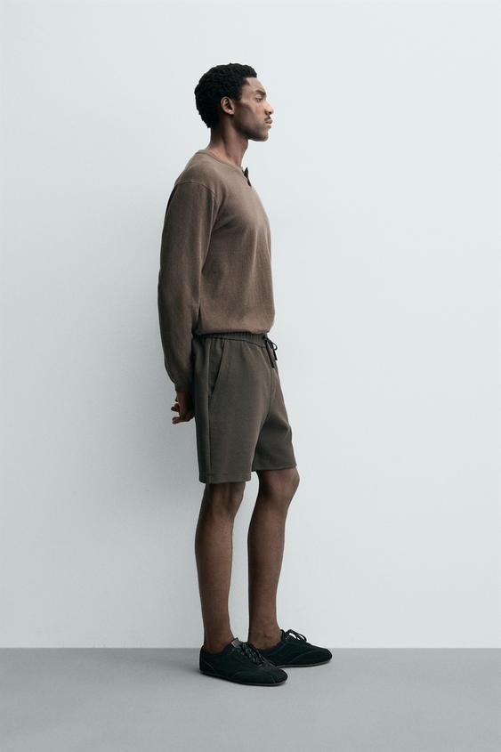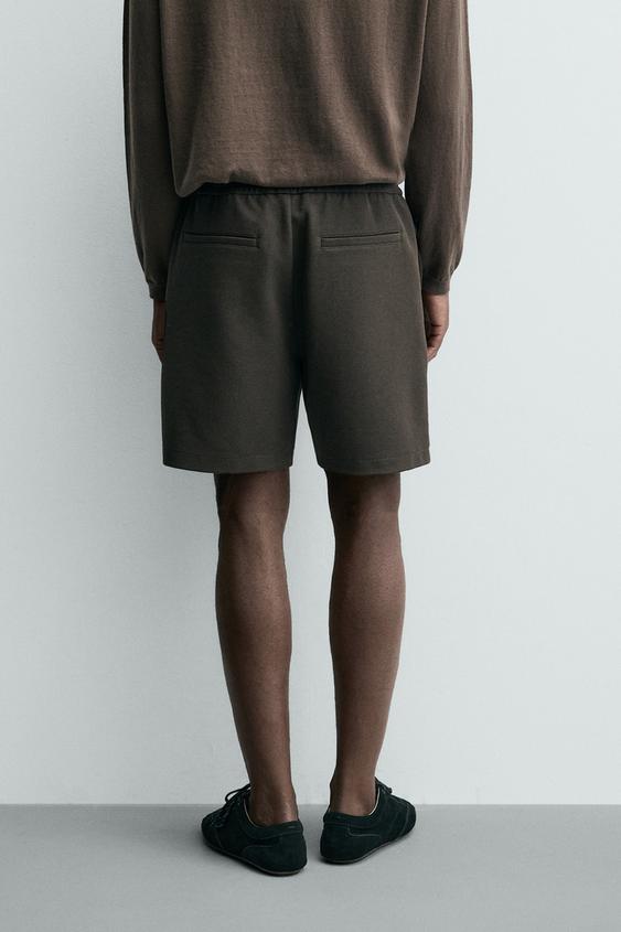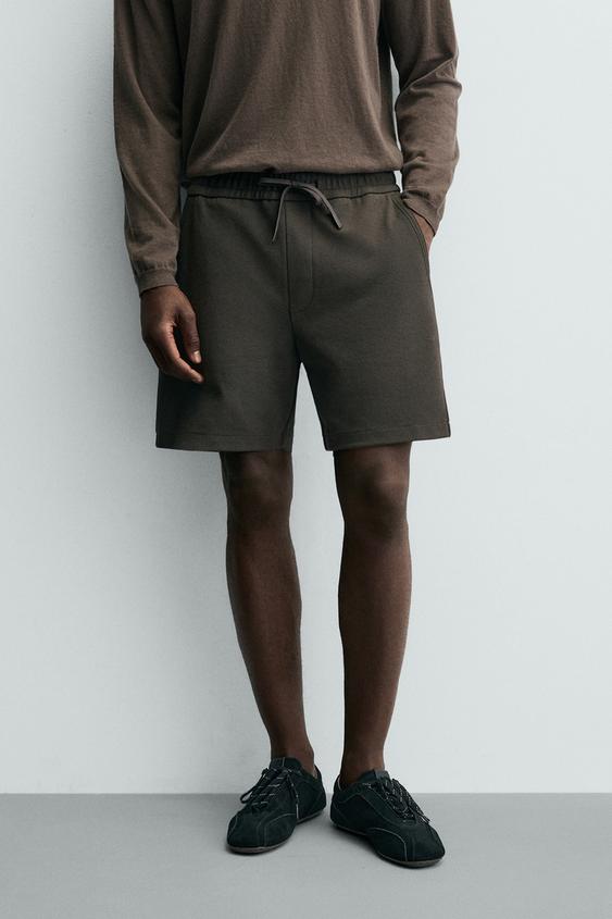ZARA ШОРТЫ КОМФОРТНОЙ ПОСАДКИ ИЗ РЕЛЬЕФНОЙ ТКАНИ, ТЕМНО-КОРИЧНЕВЫЙ
