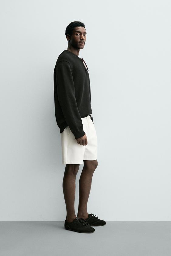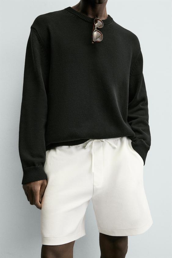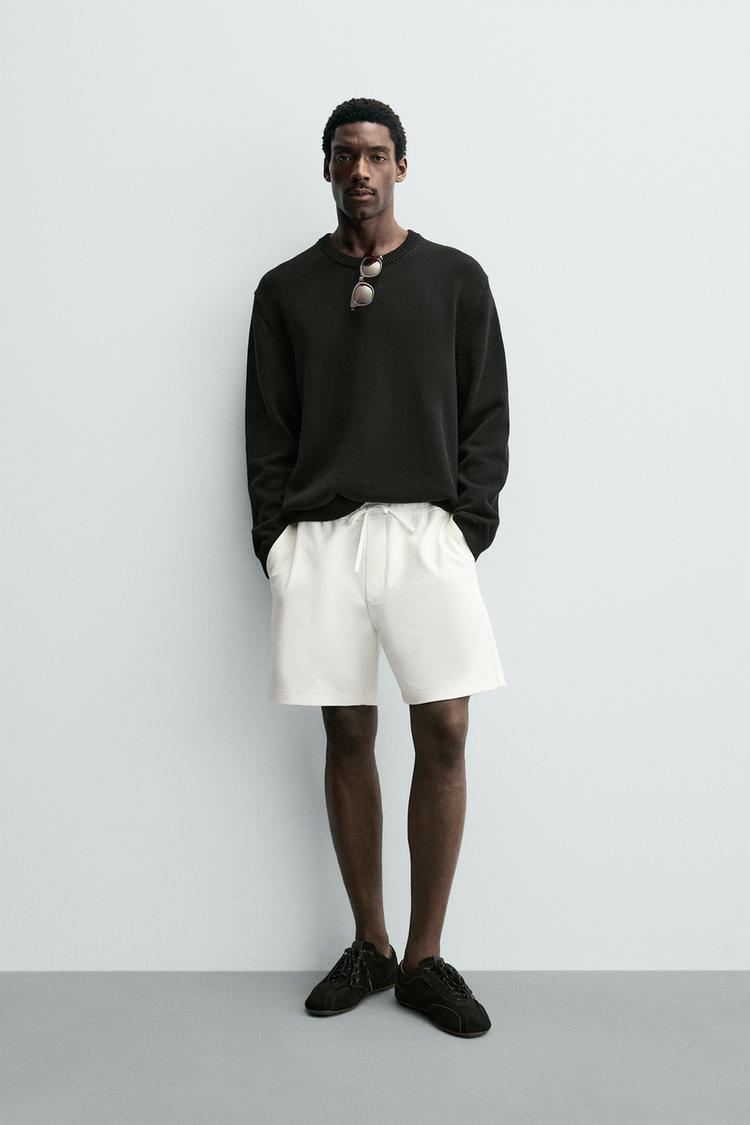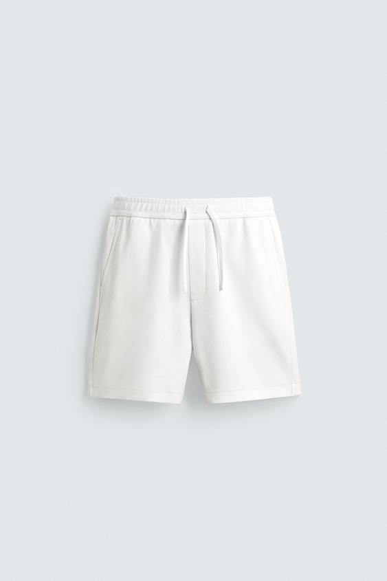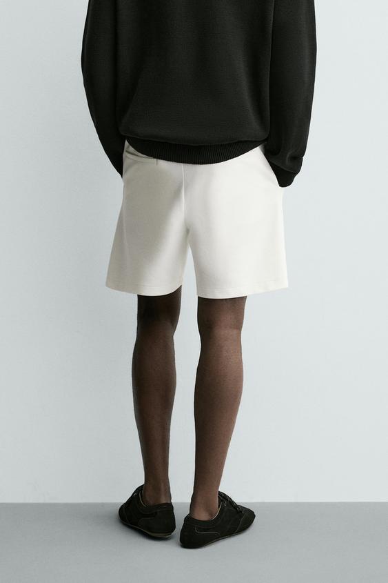 ZARA ШОРТЫ КОМФОРТНОЙ ПОСАДКИ ИЗ РЕЛЬЕФНОЙ ТКАНИ, ЖЕЛТОВАТО-БЕЛЫЙ