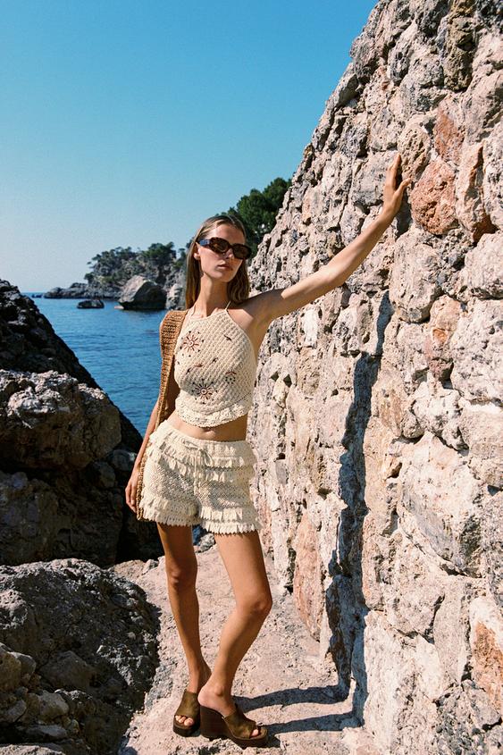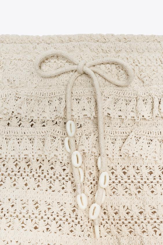 ZARА ШОРТЫ КРОШЕ С ВОЛАНАМИ, ЭКРЮ