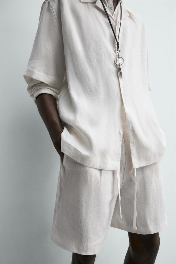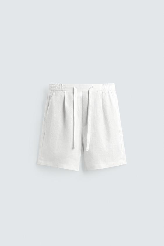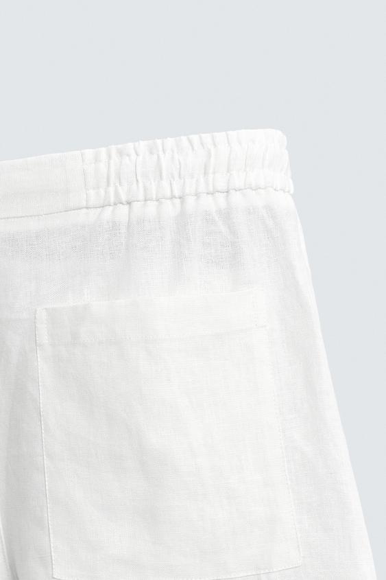 ZARA ШОРТЫ RELAXED FIT ИЗ 100% ЛЬНА, БЕЛЫЙ