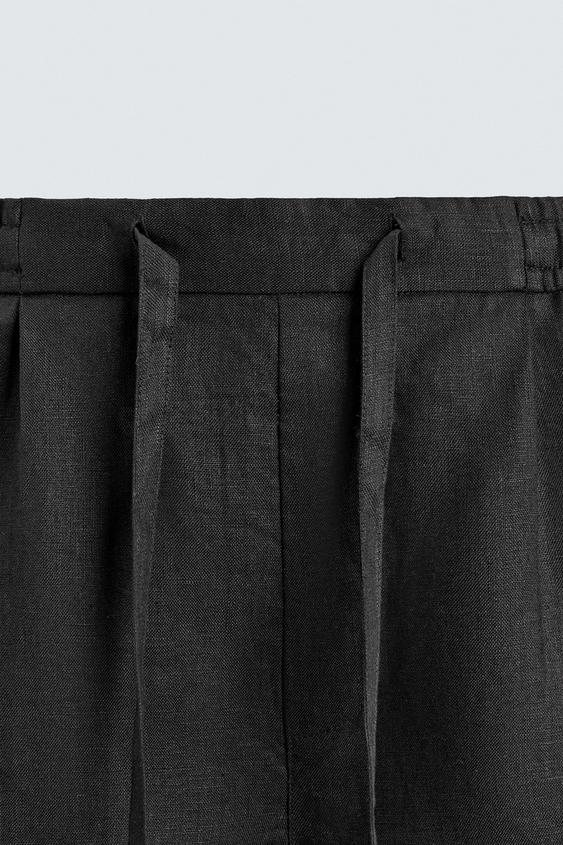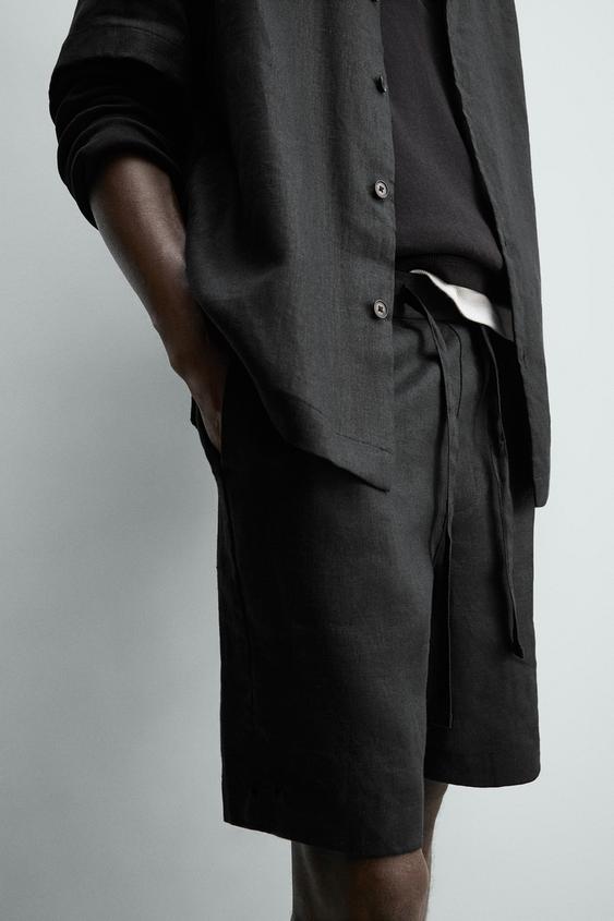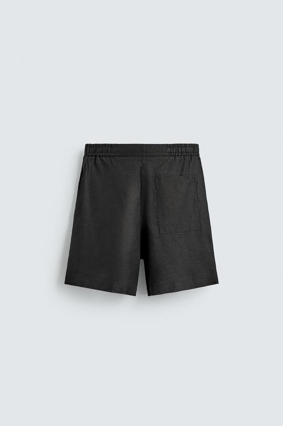 ZARA ШОРТЫ RELAXED FIT ИЗ 100% ЛЬНА, ЧЕРНЫЙ