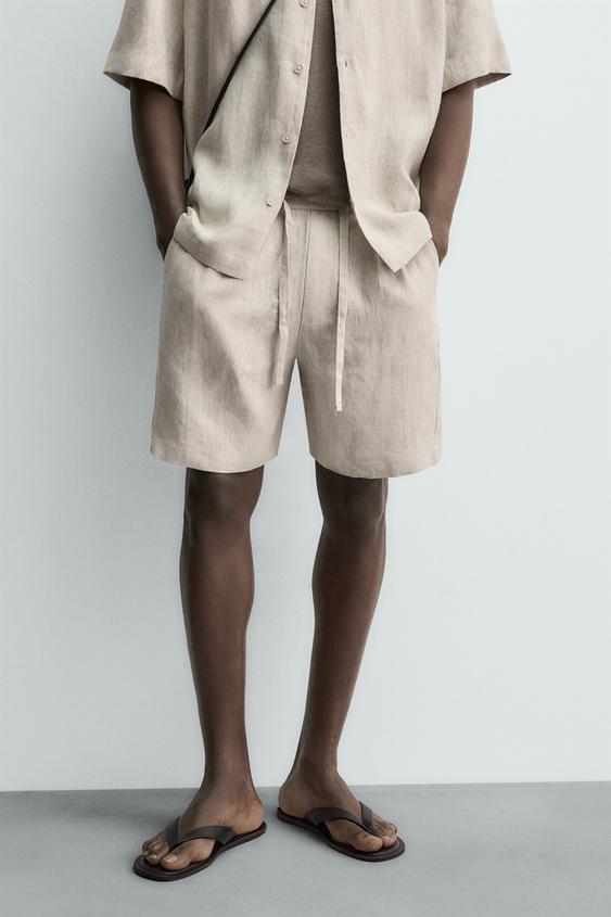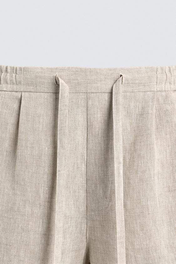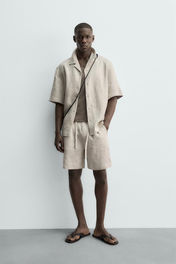 ZARA ШОРТЫ RELAXED FIT ИЗ 100% ЛЬНА, СВЕТЛО-БЕЖЕВЫЙ