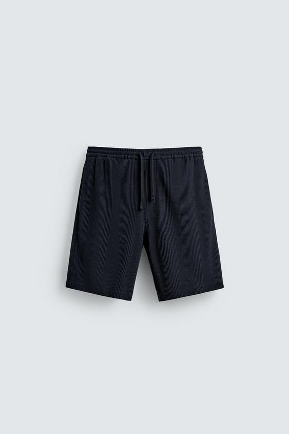 ZARA ШОРТЫ RELAXED FIT ИЗ РЕЛЬЕФНОЙ ТКАНИ, ЦВЕТ НОЧНОГО НЕБА