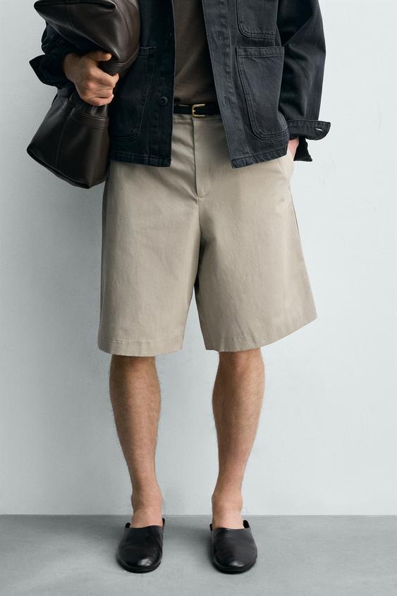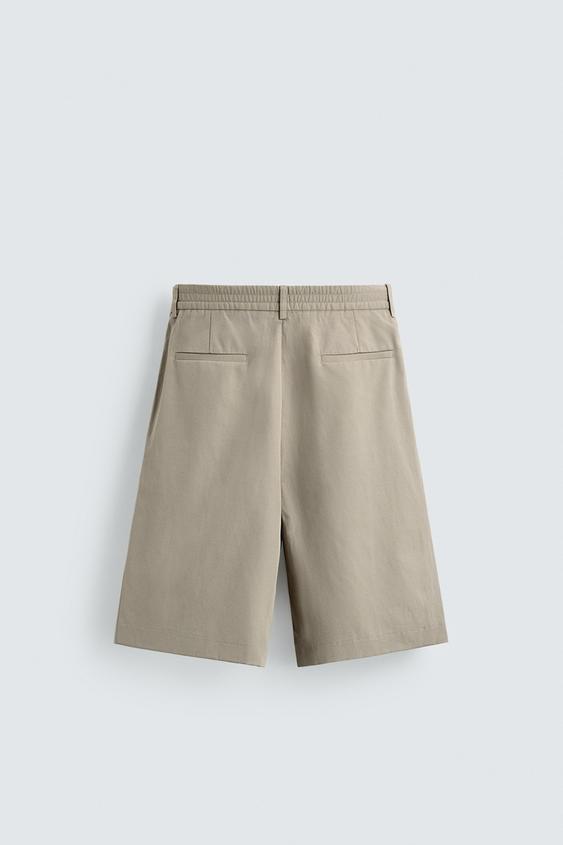 ZARA ШОРТЫ RELAXED FIT ИЗО ЛЬНА И ХЛОПКА, СЕРО-КОРИЧНЕВЫЙ