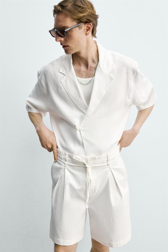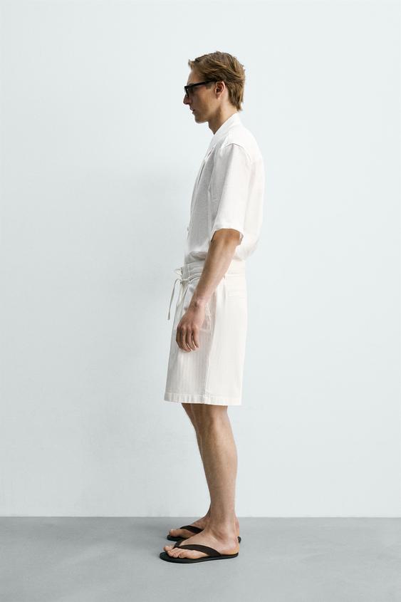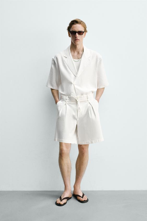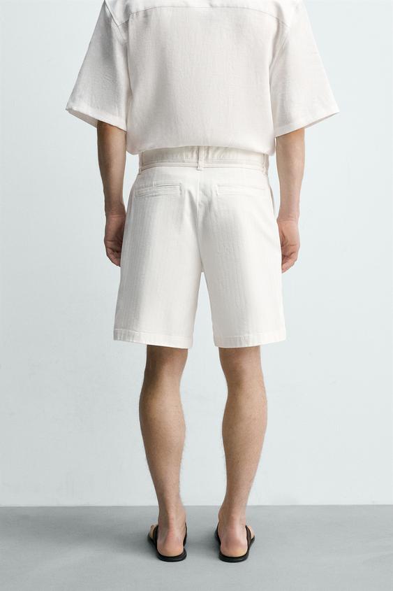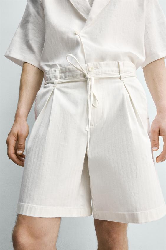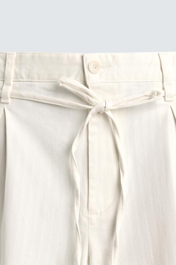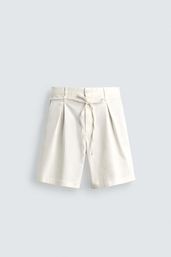 ZARA ШОРТЫ RELAXED FIT СО СКЛАДКАМИ, ЭКРЮ