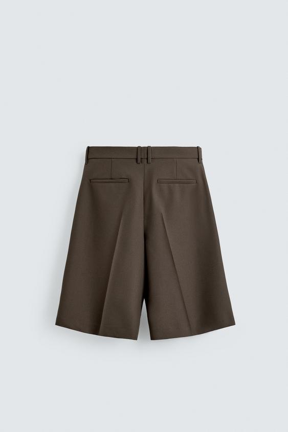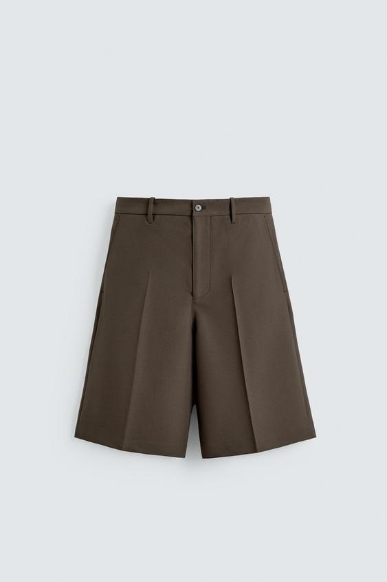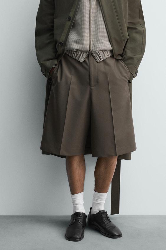 ZARA ШОРТЫ RELAXED FIT, ТЕМНО-ЗЕЛЕНЫЙ