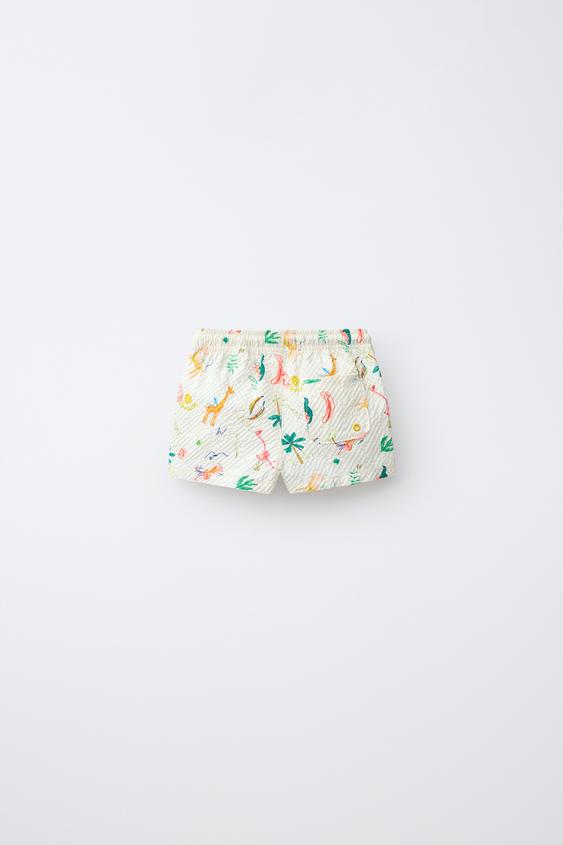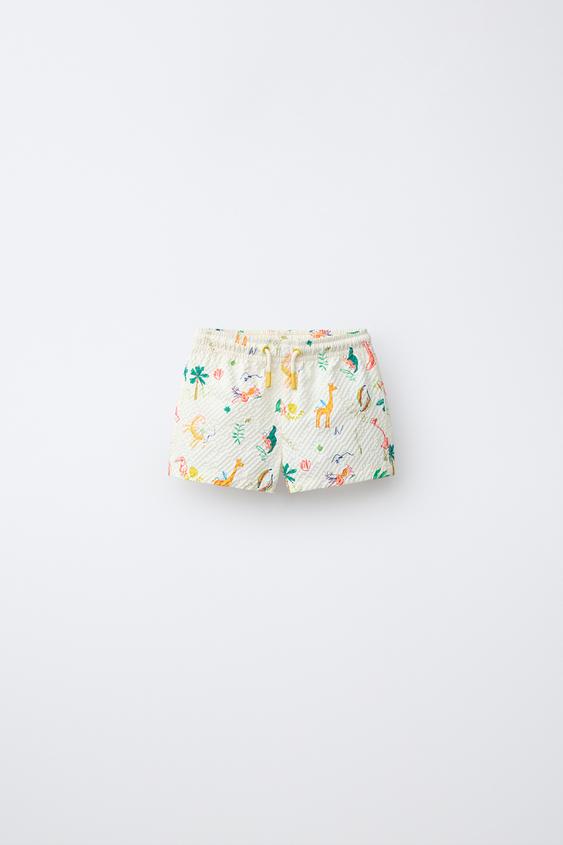 ZARA ШОРТЫ С АНИМАЛИСТИЧЕСКИМ ПРИНТОМ, ЭКРЮ