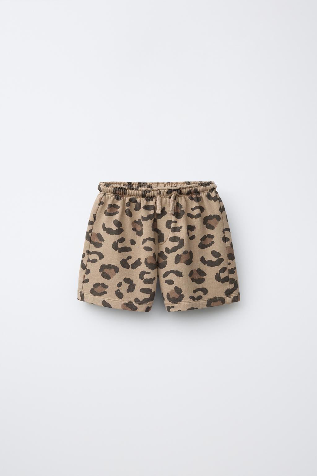 ZARA ШОРТЫ С АНИМАЛИСТИЧНЫМ ПРИНТОМ, КОРИЧНЕВЫЙ