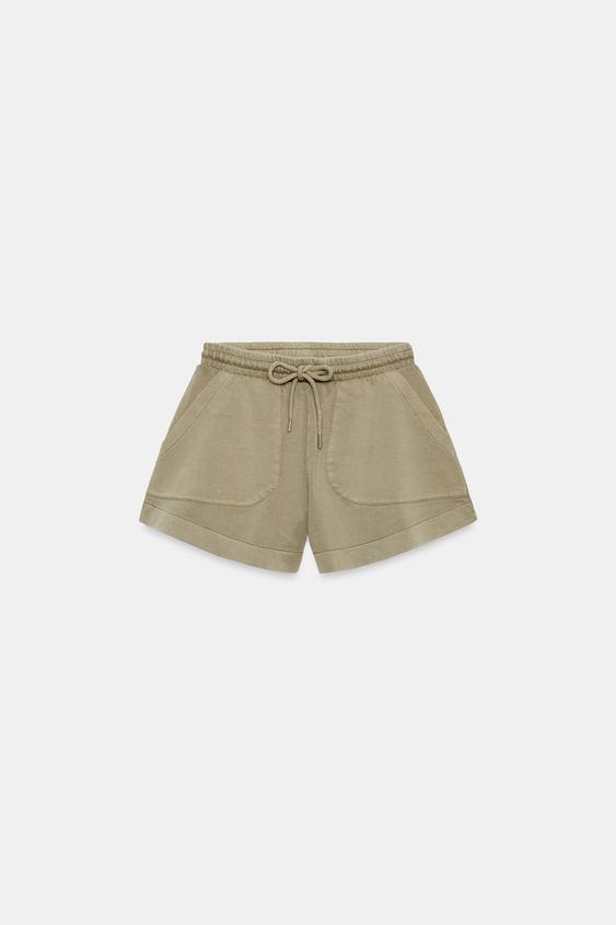 ZARA ШОРТЫ С ЭФФЕКТОМ ПОТЕРТОСТИ, СЕРО-КОРИЧНЕВЫЙ
