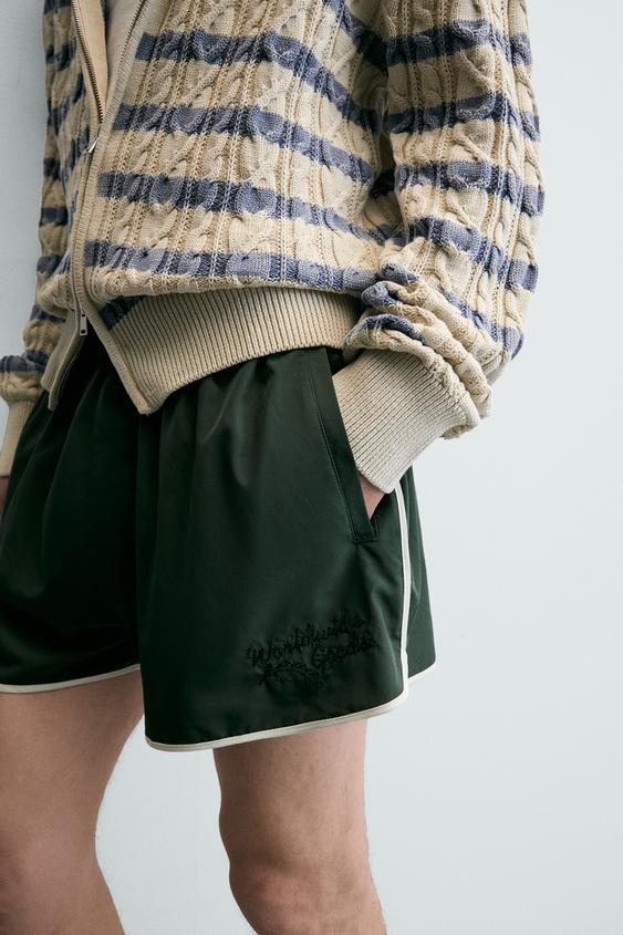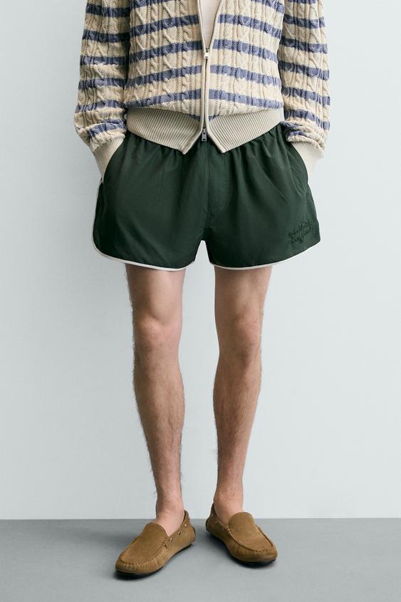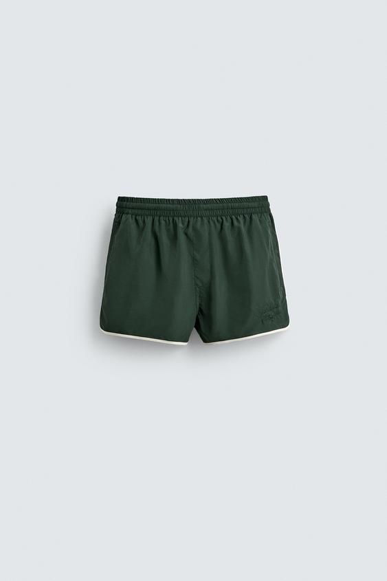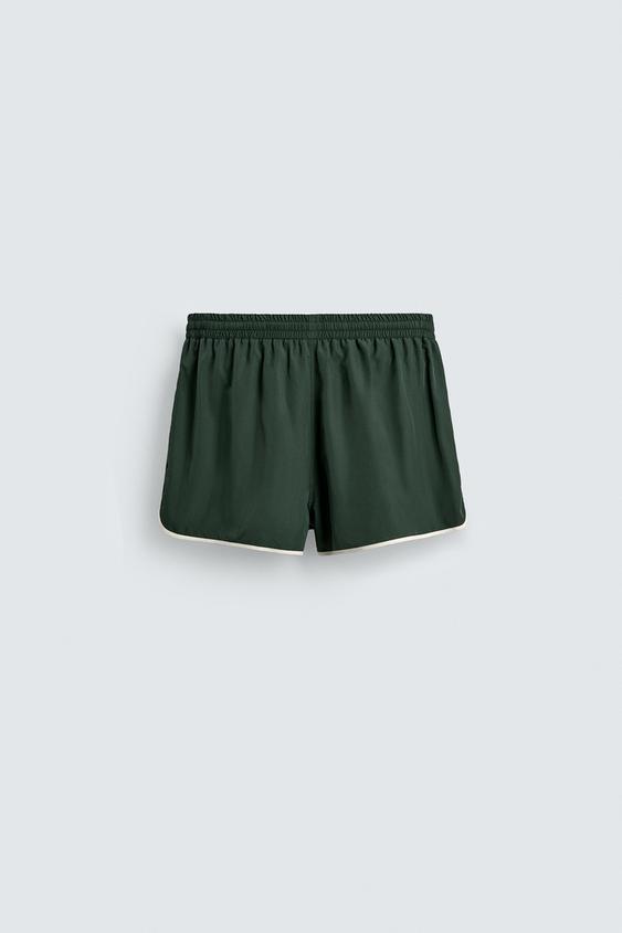 ZARA ШОРТЫ С КОНТРАСТНОЙ ОТДЕЛКОЙ, ЗЕЛЕНЫЙ