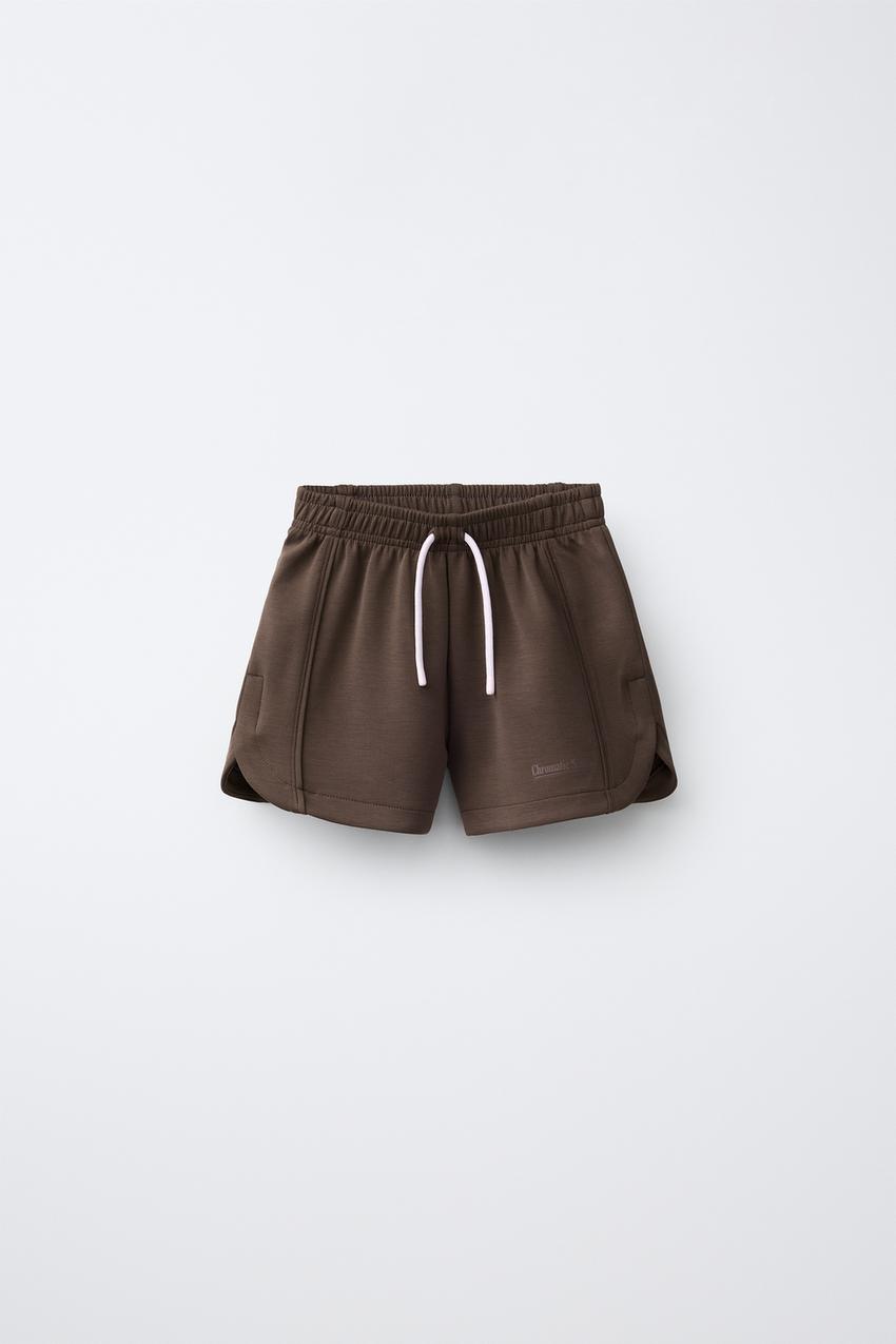 ZARA ШОРТЫ С НАДПИСЬЮ, КОРИЧНЕВЫЙ