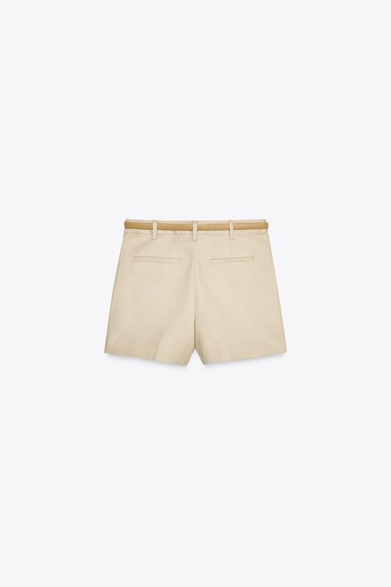ZARA ШОРТЫ С РЕМНЕМ И ЗАЩИПАМИ, СВЕТЛЫЙ-КОРИЧНЕВЫЙ