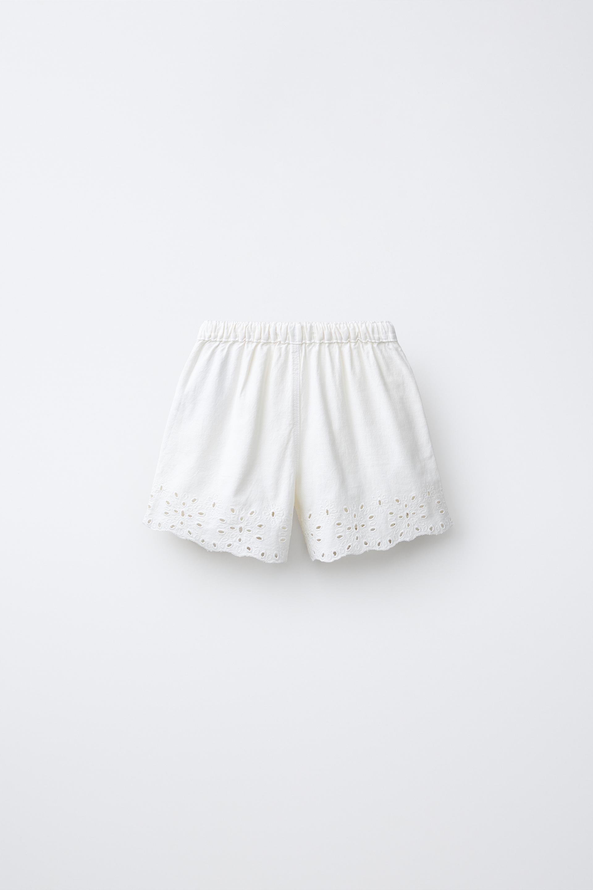 ZARA ШОРТЫ С ВЫШИВКОЙ, БЕЛЫЙ