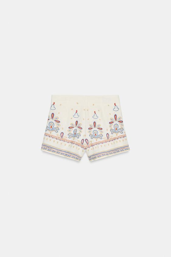 ZARA ШОРТЫ С ВЫШИВКОЙ, ЭКРЮ