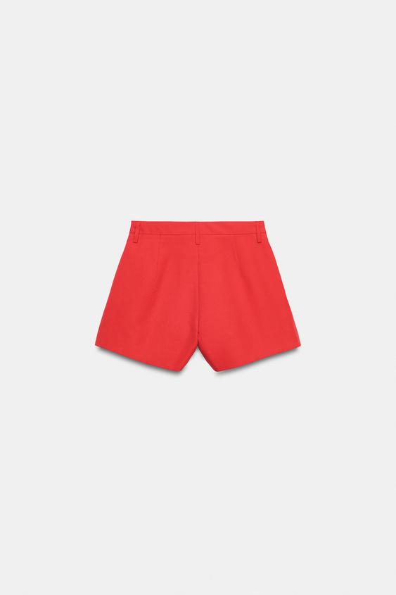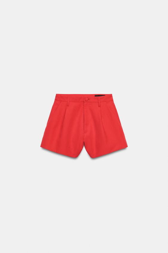 ZARA ШОРТЫ С ЗАЩИПАМИ — ZW COLLECTION, НАСЫЩЕННЫЙ КРАСНЫЙ